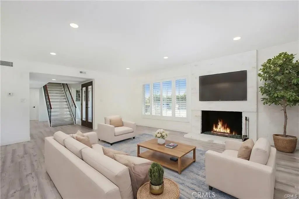 TURNKEY ! COMPLETELY REMODELED NORTH TUSTIN HOME ! DOWNSTAIRS PRIMARY BEDROOM ! SINGLE LOADED STREET ! NO NEIGHBOR IN FRONT ! Welcome Home ! 13772 Sanderstead is located in the highly sought-after North Tustin community & sits on a single-loaded street. This beautifully remodeled 4-bedroom, 2-bathroom residence exudes style & charm. Featuring a modern, open-concept floor plan, the home is enhanced with designer touches throughout, new flooring, fresh paint, and custom details offering both elegance & charm in every detail. As you enter, youre greeted by a formal entryway that seamlessly guides you into the spacious living area, where a cozy fireplace serves as the focal point. The kitchen has been beautifully remodeled & features elegant stone countertops, brand-new Samsung stainless-steel appliances, large kitchen island w/ wine refrigerator, & custom cabinetry. It opens to the dining & great rooms, creating the perfect space for hosting & entertaining.The dining room showcases a designer light fixture & offers the ultimate indoor-outdoor experience. French doors open to the entertainers backyard, seamlessly blending the two spaces for an ideal setting to enjoy both inside & outside living, The backyard has been meticulously designed w/ low-maintenance landscaping & feat. an outdoor fire pit providing the perfect spot for relaxation, offering complete privacy.The downstairs primary bedroom is generously sized, feat. new, extra large mirrored closet, recessed lighting, & direct access to the backyard. Its spacious design offers both comfort & convenience, creating a peacef