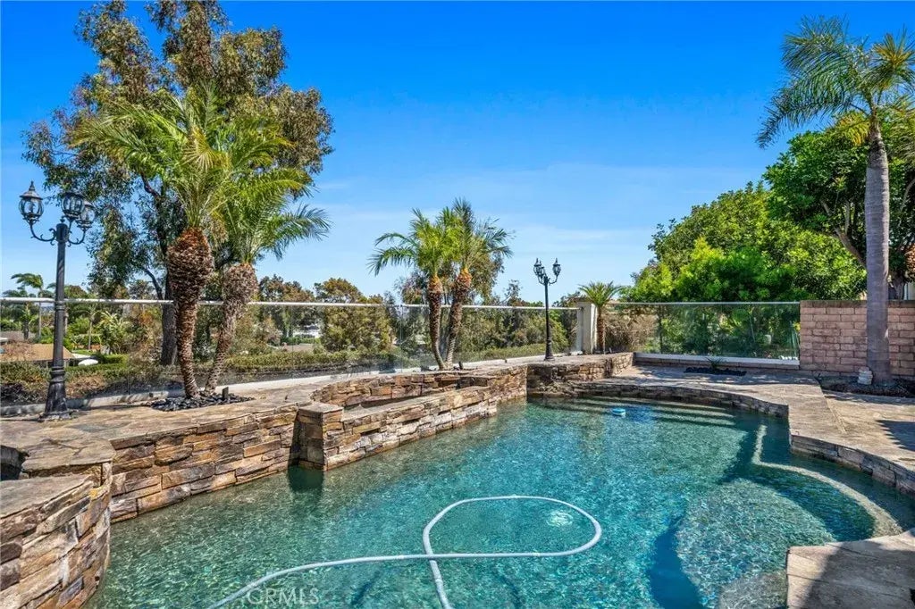 Welcome to Niguel Summits Portofino Tract Fully Upgraded Pool Home with Stunning Views and a Main Floor Primary Suite! This beautifully upgraded residence offers the perfect combination of elegance, comfort, and modern convenience. Featuring soaring ceilings, a desirable main-floor primary bedroom, and a resort-style backyard with a pool and sweeping views, every inch of this home has been thoughtfully redesigned with the highest quality materials and craftsmanship. Enter through a private gated courtyard into a lushly landscaped front yard and through impressive double doors into a bright, airy interior. Immediately to your left is a guest bedroom and a full bathroom with easy access to the laundry room and attached two-car garage. To the right, the open-concept kitchen features sleek quartz countertops, a large built-in pantry, and a charming breakfast nook. The kitchen flows seamlessly into the spacious living room with dramatic vaulted ceilings, a striking fireplace, and picturesque views of the backyard and pool. The main floor primary suite is a true retreat, offering direct access to the patio and pool area through sliding glass doors. The en-suite bath includes dual vanities and a generous walk-in closet for added comfort and functionality. Step outside into an entertainers dream backyardcomplete with a sparkling pool and spa, a large built-in BBQ island, and unobstructed viewsideal for hosting gatherings or simply enjoying Southern Californias year-round sunshine. Upstairs, two additional bedrooms (currently used as flex spaces) offer endless possibilities for gue