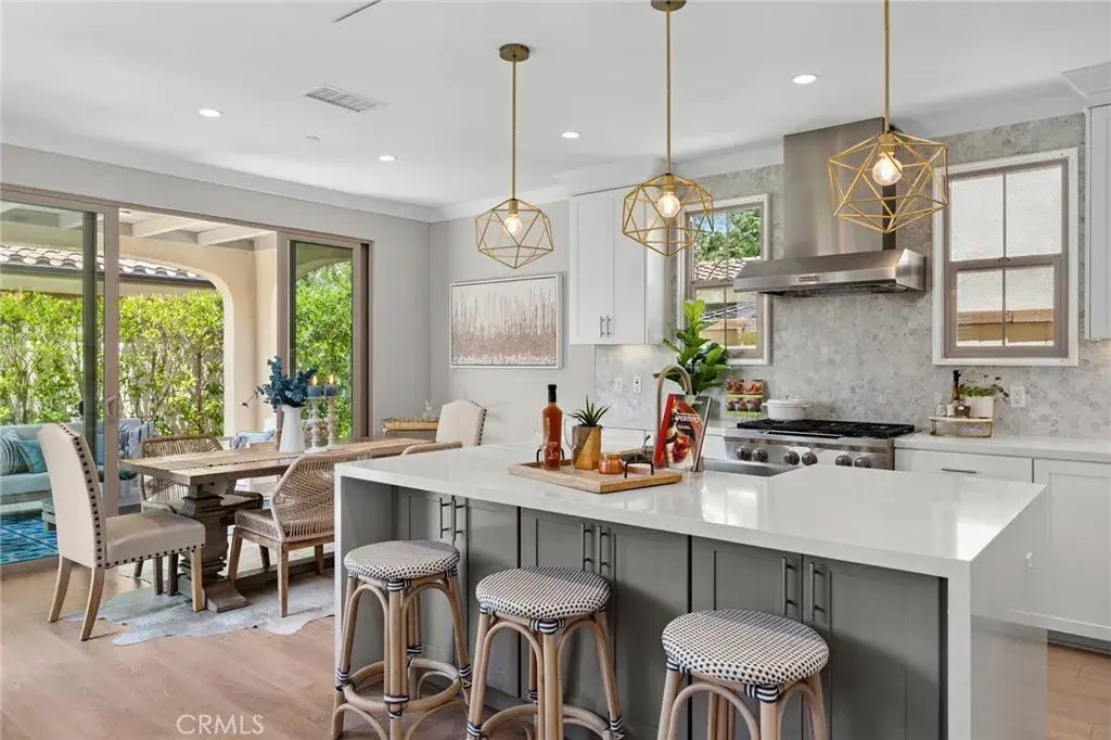 Located in the heart of Eastwood Village, this spectacular Petaluma home eagerly awaits you. A masterful open floor plan concept is brought to life with amazing designer upgrades throughout, creating a seamless blend of elegance and functionality. The chefs kitchen is a true centerpiece, featuring Thermofoil Shaker cabinets extending to the ceiling, a stunning custom waterfall island with pendant lights and grey cabinetry for added storage, and quartz countertops complemented by a full marble backsplash. An upgraded top-of-the-line stainless steel appliance package completes this culinary space. Retreat upstairs to a luxurious primary suite showcasing an ensuite master bath with dual sink vanities, quartz countertops, and a frameless glass shower with upgraded tile walls and flooring. Laminate wood flows across the first floor, while premium carpet with an extra-thick mold-proof underlayer and upgraded tile in all bathrooms and the laundry room provide comfort and durability. Every detail has been thoughtfully designed: custom paint throughout, double wall insulation for efficiency and noise reduction, Nest smart thermostats, white window shutters, recessed lighting in all bedrooms and bathrooms, and upgraded stainless steel cabinet handles. The backyard is perfect for entertaining with tile and artificial turf flooring, trees with a drip system managed by a Rachio smart controller, and LED accent and overhead lighting. Even the garage impresses with epoxy floors, ceiling-mounted storage, a smart opener, and a Tesla charger. Close proximity to resort style amenities includi