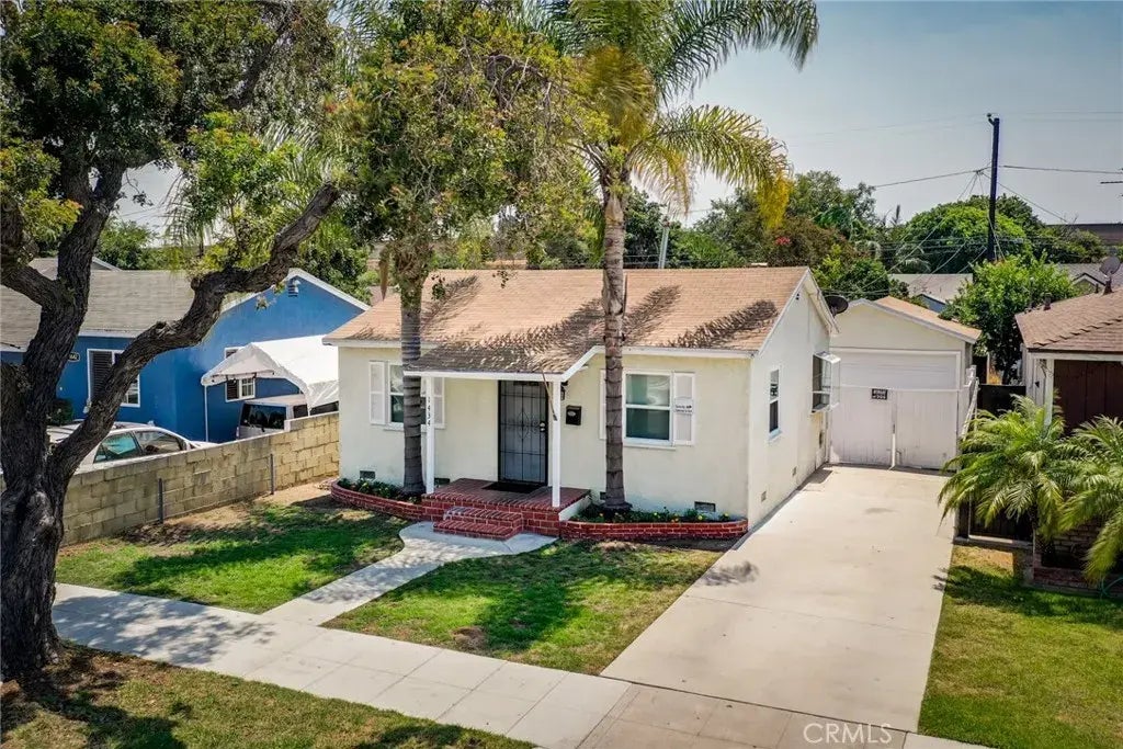 The prettiest little starter home in N. Long Beach that also has some pretty cool hidden potential....why??? 1434 E 68th sits forward on its large lot with separate alley access behind it. With a two car garage, a covered patio and the home's large private yard many neighbors have already realized that they can add an ADU, a Junior ADU or simply expand their homes. Check with the city for details but who doesn't love having that potential? Speaking of potential, the home also has an additional permitted step down patio room (approx. 285 sf) that was enjoyed by its current owners as a huge 3rd primary bedroom "or" it could just be a bonus room. Freshly painted and featuring an updated full bath, dual pane windows throughout, a sunny garden window, convienient raised foundation, a detached 2 car garage with roll up door and a pretty covered patio for enjoying supper outside on a warm summer evening. Conveniently close to markets, Target and a variety of restaurants. A single family home at a condo price AND without HOA dues or rules, who doesn't love that!