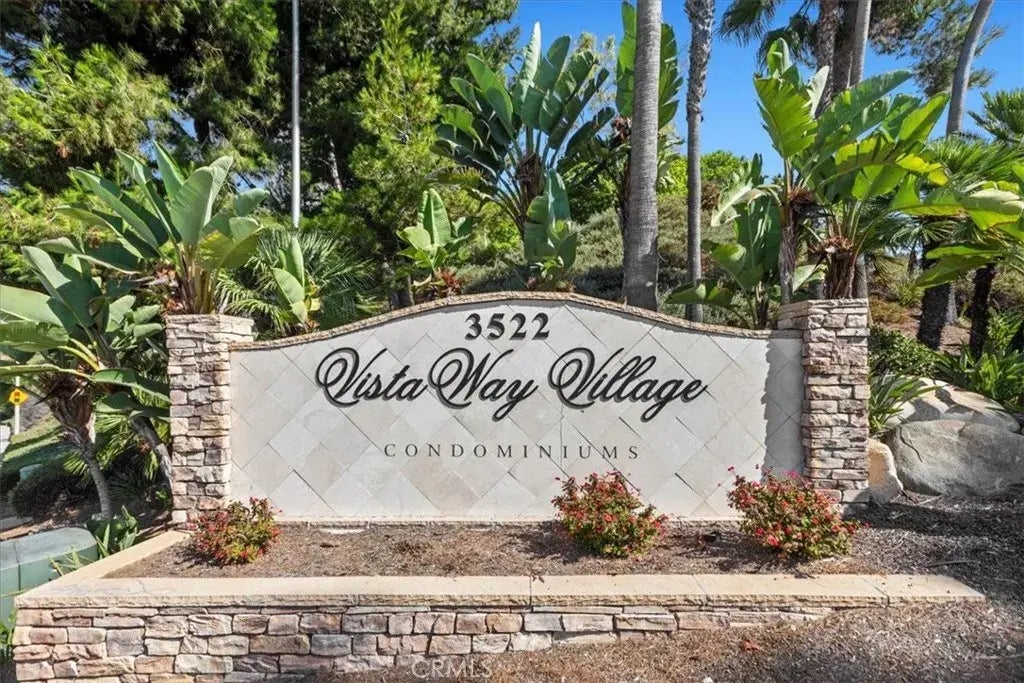 Welcome to this elegant 2-bedroom, 2-bathroom condo for lease in the desirable Vista Way Village community of Oceanside. Desirable, ground/walk-in level home that's perfect for coastal living, offering a spacious 1,093 square feet of living space filled with natural light. The kitchen is a true highlight with its modern stainless-steel appliances, beautiful granite countertops, and rich wood cabinetry, all complemented by a convenient breakfast bar that's great for casual dining or entertaining guests. From the dining area step outside to your private, covered patio to enjoy the fresh coastal breeze and open views. You'll love the thoughtful touches throughout like the elegant crown molding, hard surface flooring and updated fixtures. The spacious primary suite provides a private escape with its own updated en-suite bathroom while the second bedroom and updated second bath offers flexibility for a guest room, a home office, or whatever suits your needs. Enjoy the convenience of inside laundry, with the washer, dryer, and refrigerator included. You'll have two dedicated parking spaces: one in the garage and an assigned spot in the community. The resort-style community offers fantastic amenities, including two pools, spas, a clubhouse, a fitness center, tennis courts, and a playground. Located just a 10-minute drive from the iconic Oceanside Pier and the beach, with easy access to the 78 freeway, this home puts shopping, dining, and all the perks of coastal living right at your fingertips.