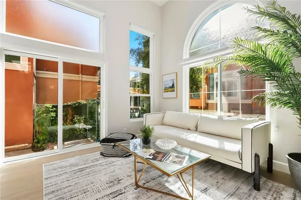 Welcome to Corte Bella, where timeless European-inspired architecture meets modern luxury in a completely detached home with a private backyard! This stunning 3-bedroom, plus flex room/ office,2.5-bath residence boasts 1,600 sq. ft. of thoughtfully designed living space, offering an open-concept split-level layout with soaring cathedral vaulted ceilings, abundant natural light, and high-end finishes throughout. Step into the inviting formal living and family rooms, where a cozy fireplace, and recessed lighting create the perfect ambiance for relaxation and gatherings. The gourmet kitchen is a chefs dream, featuring custom cabinetry, sleek quartz countertops, a center island, and top-of-the-line stainless steel appliances. The home offers three spacious bedrooms, including a convenient downstairs bedroom, perfect for guests or a home office. Upstairs there is 3 spacious secondary bedrooms and the primary suite is a private retreat with a walk-in closet , dual vanities, a dedicated makeup counter, and an oversized walk-in shower. Recent upgrades include new luxury vinyl flooring, Milgard V400 TUSCANY top-of-the-line windows & patio door newly installed, fresh designer paint throughout, and updated recessed lighting, along with recently renovated kitchen and bathrooms. A dedicated laundry room and direct access to the two car garage adds to the home's convenience. Located in the prestigious gated community of Corte Bella, residents enjoy resort-style amenities, including a sparkling pool, relaxing spa, tennis courts, BBQ areas, and lush parks like the Bill Barber Memorial Park