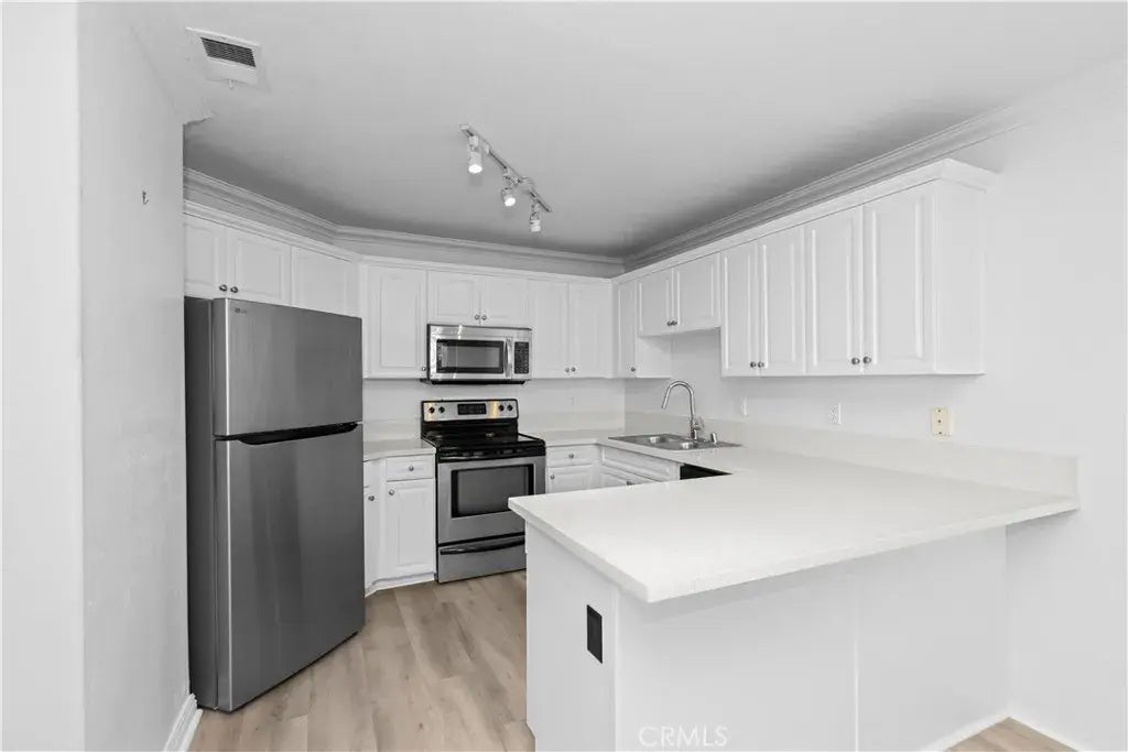 Welcome to this elegant 2-bedroom, 2-bathroom condo for lease in the desirable Vista Way Village community of Oceanside. Desirable, lower-level home that's perfect for coastal living, offering a grassy space just outside the front door and a spacious 1,093 square feet of living space filled with natural light. The kitchen is a true highlight with its modern stainless-steel appliances, beautiful quartz countertops, and timeless white cabinetry, all complemented by a convenient breakfast bar that's great for casual dining or entertaining guests. From the dining area enjoy a garden window and French door access to your private, covered patio to enjoy the fresh coastal breeze and open views. You'll love the thoughtful touches throughout like the hard surface flooring, fresh white paint and updated fixtures. The spacious primary suite provides a private escape with its own en-suite bathroom while the second bedroom and second bath offer flexibility for a guest room, a home office, or whatever suits your needs. Enjoy the convenience of inside laundry, with the washer, dryer, and refrigerator included. You'll have two dedicated parking spaces: one in the garage and an assigned spot in the community. The resort-style community offers fantastic amenities, including two pools, spas, a clubhouse, a fitness center, tennis courts, and a playground. Located just a 10-minute drive from the iconic Oceanside Pier and the beach, with easy access to the 78 freeway, this home puts shopping, dining, and all the perks of coastal living right at your fingertips