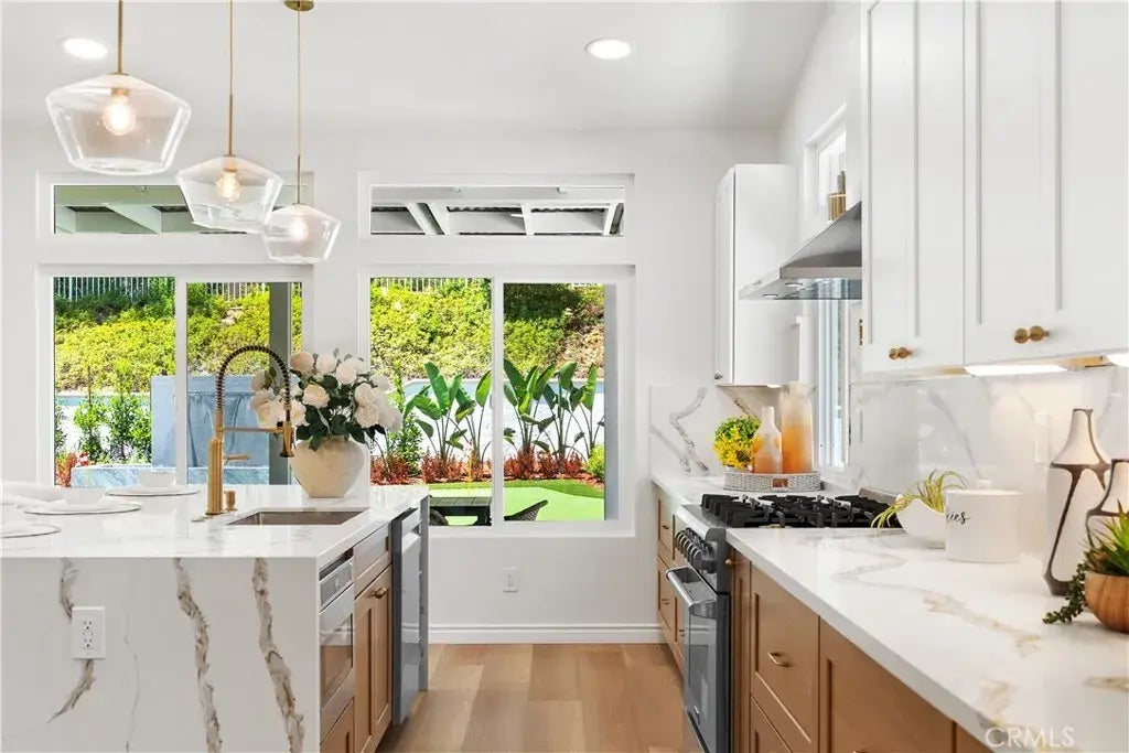 Newly Renovated Single-Story Corner Home in the Coveted Yorba Linda High School Zone! Meticulously redesigned from top to bottom, this rare corner residence offers 4 bedrooms plus a private office, combining timeless elegance with modern comfort. Step inside to soaring, high-ceiling living and formal dining roomsperfect for gatherings and entertaining. The designer-upgraded kitchen showcases sleek quartz countertops, premium THOR appliances including a wine fridge, a pot filler, abundant cabinetry, and a spacious walk-in pantry. An additional high-ceiling family room with a cozy fireplace opens to the beautifully landscaped backyard, creating a seamless indoor-outdoor lifestyle. The expansive primary suite features a grand double-door entry, direct backyard access, and a spa-inspired bath with a jetted tub and dual sinks. Outside, the resort-style backyard is newly landscaped and fully private, complete with a built-in BBQ island, water feature, putting green, fire pit, and a detached patio pavilionperfect for entertaining or unwinding in style. Generously sized side yard with ample space for RV parking. Notable upgrades include new windows and sliding doors, new plumbing and fixtures, new A/C system, durable luxury vinyl flooring throughout, and a 3-car garage with new garage doors, epoxy flooring, and garage openers. Come check it out while it lasts!