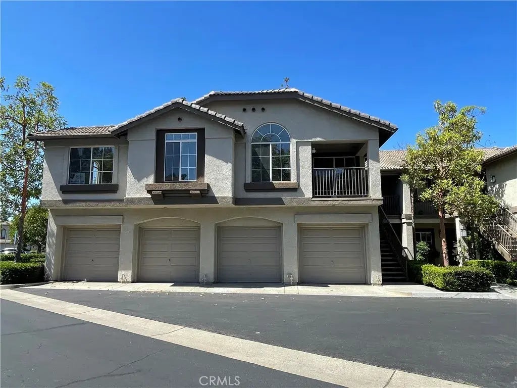 Upstairs 2 bed, 2 bath end-unit condo with vaulted ceilings in Foothill Ranch with no one above or below! Located above garages for added privacy. Features new carpet, new paint, tile entry, stainless gas range, recessed lighting, and formal dining with breakfast bar. Full-size in-unit laundry and central A/C. Enjoy a large covered balcony and a nearby 1-car detached garage with opener. Community pool close by.