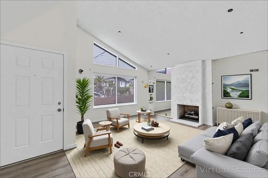 Single-Story Beauty with Vaulted Ceilings, Fireplace & Outdoor Entertaining Spaces tucked away on a peaceful cul-de-sac on the border of Huntington Beach with SOUND PROOF WINDOWS! This 3-bedroom, 2-bath home offers just over 1,300 sq. ft. of stylish comfort and low-maintenance living. Step inside to a bright, open living room where soaring vaulted ceilings and a cozy fireplace create the perfect spot for gatherings with family and friends. The seamless flow into the dining area and kitchen makes entertaining a breeze. The kitchen is very spacious and is begging for a large island to be installed while still providing space for a nook table. An extra large slider provides access to the backyard which is fully paved, giving you beautiful, usable outdoor space without the upkeepideal for BBQs, al fresco dining, or a morning cup of coffee in the sunshine. The primary bedroom has a dramatic entrance with a double door entry and a walk in closet. All of the bedrooms have ceiling fans and some other recent upgrades include: a newer roof, electrical, plumbing and neutral laminate flooring throughout the home! Both bathrooms have been remodeled with stone countertops, newer vanities and recessed lighting. The two-car garage provides plenty of parking and storage, space for washer and dryer and a space saving roll up garage door. Additionally, there is also a full two car driveway. Located just 1 mile from the freeway and 4 miles to Long Beach's beautiful PCH & 2nd shopping center the location couldn't be more ideal. With its desirable single-story layout, charming upgrades, and grea