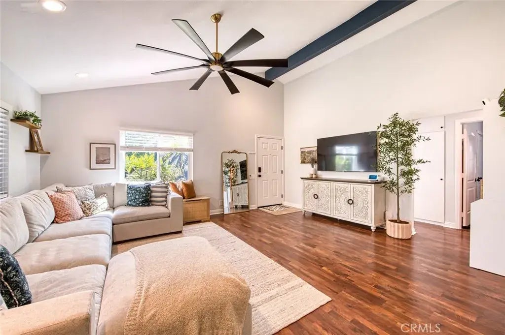 Welcome to this charming single-level Cordova home, nestled in the heart of Mission Viejo. This thoughtfully designed residence offers three bedrooms and two bathrooms, featuring high vaulted ceilings and abundant natural light in the spacious open-concept great room. The primary bedroom includes an ensuite bathroom, while two additional guest bedrooms and a guest bathroom provide ample additional accommodation. Step into the private backyard, an ideal space for relaxation or entertaining, enhanced by low-maintenance, water-efficient landscaping with premium turf. The home benefits from a solar panel system, contributing to energy efficiency. Enjoy the perks of a vibrant community with low HOA fees and availability to exclusive access to Lake Mission Viejo. Experience comfort and convenience in this inviting home.