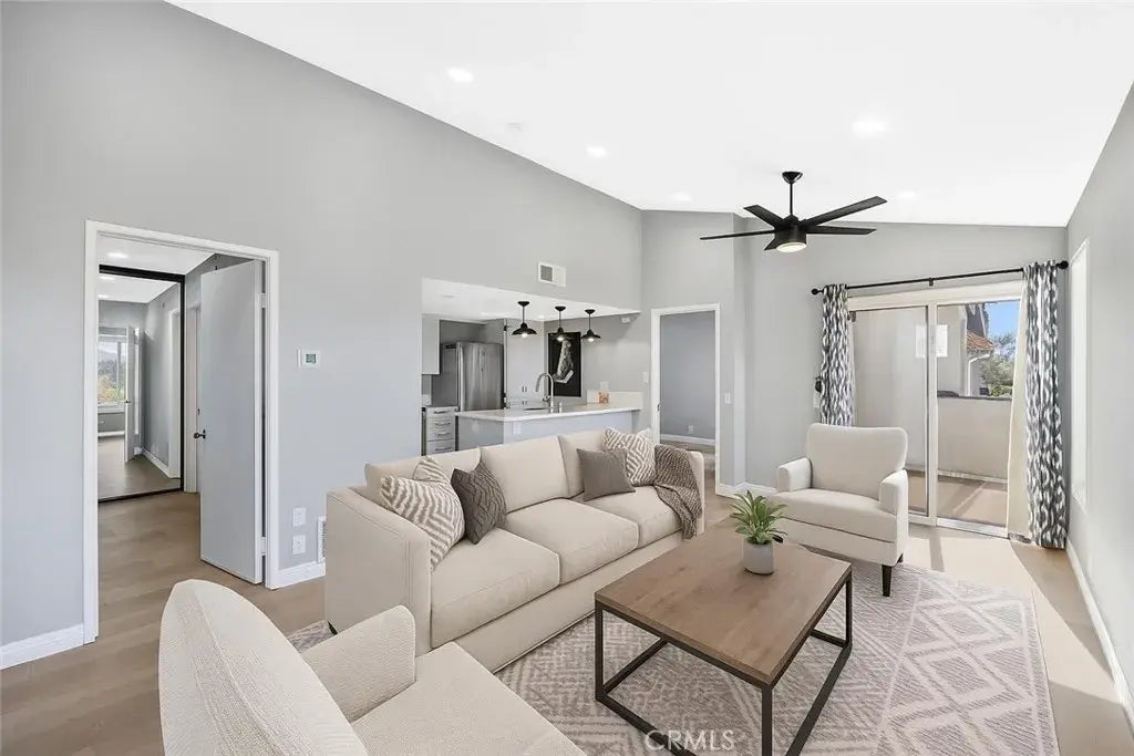 Dont miss this move-in ready, well maintained, bright and airy single-level upper unit in the desirable Las Palmas community of Mission Viejo, offering unobstructed panoramic views. The open floor plan showcases vaulted ceilings, new luxury vinyl plank flooring throughout, new windows and tinted sliding glass door for energy efficiency, and two primary bedrooms, each with its own full ensuite bathroom. Relax on the spacious balcony, which along with the large main living areas, takes full advantage of the sweeping views. Additional highlights include inside laundry with washer and dryer included, included fridge, air conditioning, a covered carport with storage plus an extra parking space, and community pools. Water and trash are included, and residents have the option for membership at Lake Mission Viejo for a small monthly fee, where they can enjoy the beach, clubhouse, rental boats, concerts, fireworks, and more.