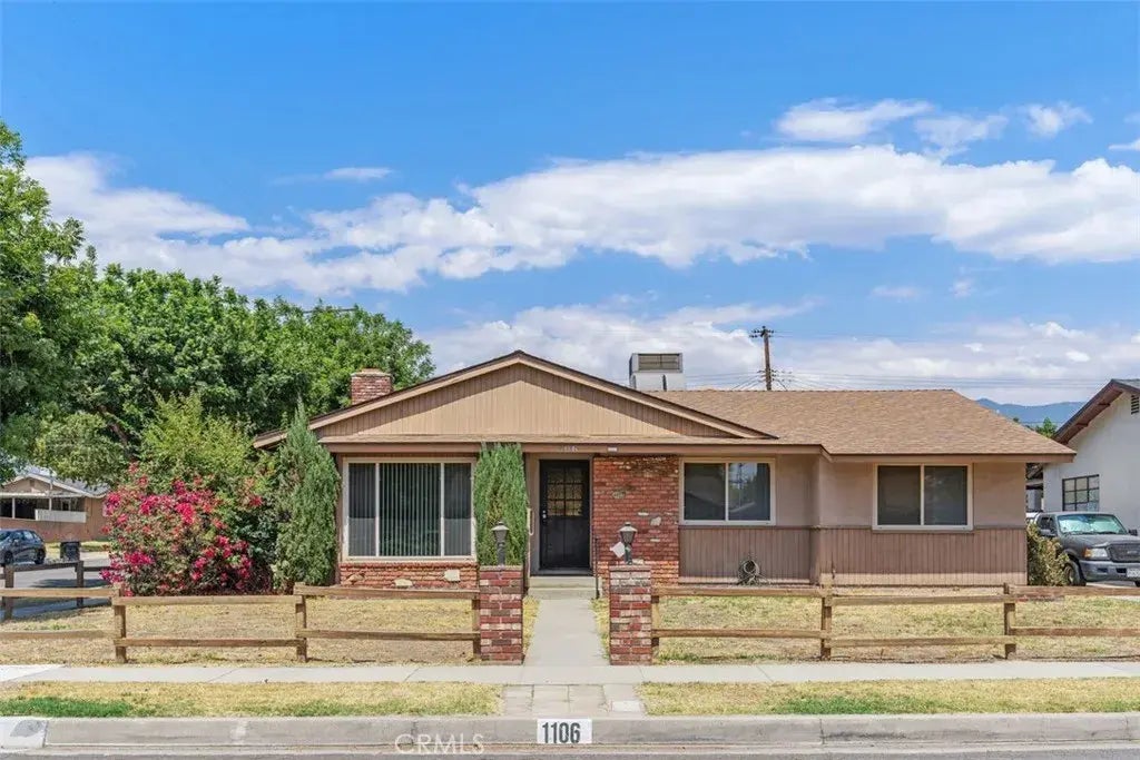 Welcome to 1106 E. Alexander Ave. This mid-century ranch style home is situated on a mature tree lined corner lot in the Northeast Sterling Neighborhood of San Bernardino. The Home offers three generously sized bedrooms, two baths and bonus space for flexible living. Primary bedroom is equipped with en-suite bath. The living room has ample lighting from the large picture window overlooking front yard and corner fireplace for those cozy winter nights. The galley kitchen is charming with an eat-in breakfast area, perfect for morning coffee gatherings. Walls have been freshly painted offering plenty of space for artwork, mirrors and decor. Laundry room is conveniently located off the kitchen and accessible from bonus room. The detached garage is easily accessible on the West Side and is enclosed by wood fencing and double swing gate for security. The garage accommodates two cars and has open attic space for additional storage. The home is located a short distance to the 210 frwy. for easy commutes. Enjoy the outdoors at Perris Hill Park and Sterling Park which are both within walking distance. This is an ideal opportunity for first time home buyers, those looking for an income generating property or investor looking for their next fixer.