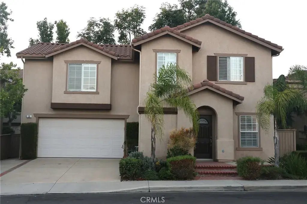 Rancho Santa Margarita home with an all new interior. The house has 3 upstairs bedrooms together with a large bonus room, and 2 baths. The entire downstairs has all new porcelain tiles. The stairs and bonus room located at the top of the stairs are finished with new luxury vinyl flooring. The 3 bedrooms have new luxury carpeting. The 2 1/2 bathrooms all have new tile, vanities and toilets. The entire interior has been painted in an off white color. The kitchen has been remodeled with quartz counters, almond finished cabinets and all new stainless appliances: a 5 burner gas stove, microwave and dishwasher. The backyard consists of a patio with a finished planter. The side yard includes several fruit trees. The 2-car garage has an opener and opens into the kitchen area through a laundry room. The front and rear yards have automatic sprinklers. The front yard is landscaped with drought tolerant plants. A newer air conditioning system provides lower electric bills.