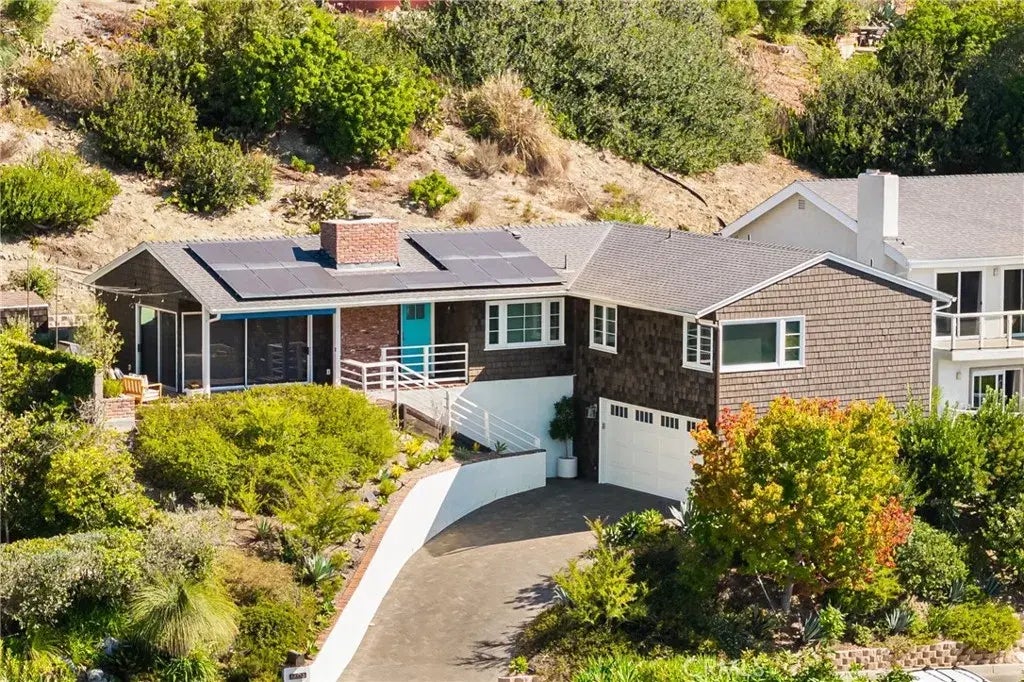 Experience coastal elegance within this completely reimagined single-level home in Lower Temple Hills. Wrapped in classic wood shingles, this home exudes timeless character while offering modern upgrades including a newer roof and fully owned solar. Here, sweeping views of the ocean, rolling hills, and breathtaking sunsets set the stage for everyday living. Step inside to find European engineered hardwood floors and all-new dual-paned casement windows with tempered glass. The upgraded kitchen boasts Thermador appliancesincluding the dishwasher, induction cooktop, and ovenpaired with self-closing cabinetry, a built-in Liebherr refrigerator, and a pantry with built-in drawers, creating the perfect space for both cooking and entertaining. A gas brick fireplace warms the living room, where ocean views become the backdrop of daily life. The kitchen, breakfast nook, and primary suite also capture stunning coastal vistas. Outdoors, a wraparound brick patio with a built-in BBQ provides the ideal setting for gatherings with a view. Both bathrooms have been remodeled with designer Daltile tile, walk-in showers, and Room & Board vanities topped with quartz counters. The primary bath is accented with Serena & Lily wallpaper for a refined touch. Motorized shades, a 2-car side-by-side garage with EV charging, solar battery, and a built-in storage shed add modern convenience. Recent upgrades include a newer Goodman A/C and furnace, top loading washer and dryer, and water heater (20222023), ensuring comfort year-round. Enjoy the perfect location close to shops, restaurants, art galleries,
