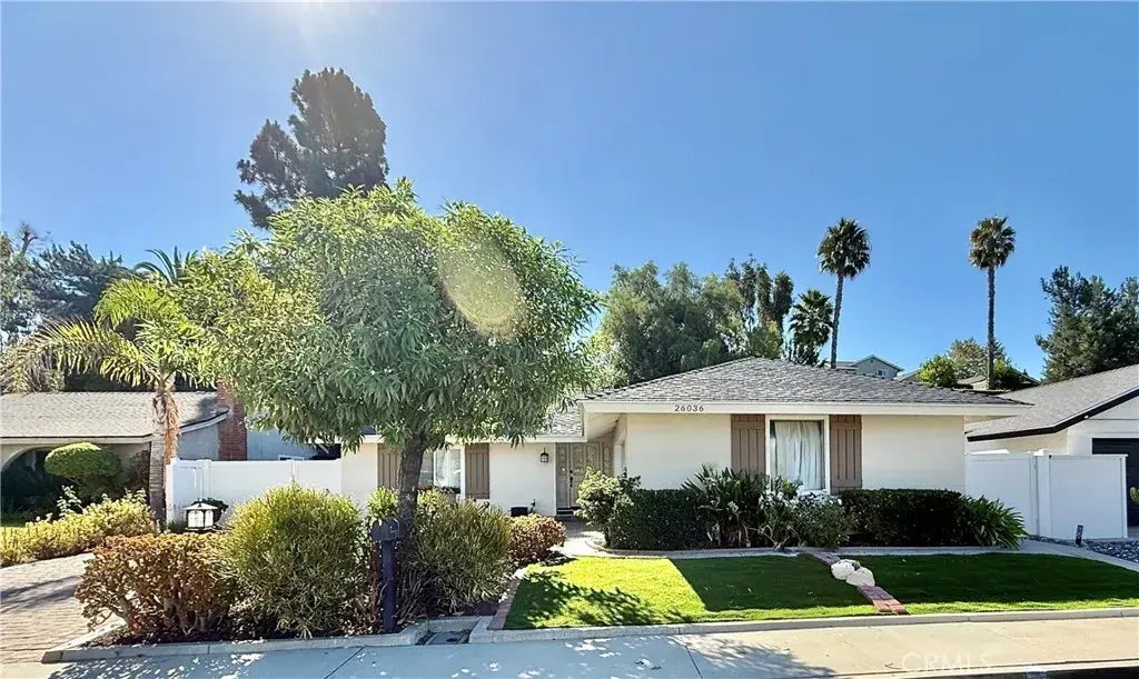 MUST SEE, SINGLE LEVEL, SUPER LOCATION! Fully re-configured single story home with an unbelievable floor plan that takes your breath away. This house has it all. Great single level floor plan, amazing great room with high ceiling, open kitchen with supersize island, hardwood floor, designer paint, Stainless steel range, microwave and dishwasher, a beautiful stone fireplace in the great room, a very large master suite with a walking closet and a contemporary bathroom with standing frameless enclosure shower, Elegant tiles and double sink vanity, 2nd bedroom with its full bath including another standing shower and a walking closet, 3rd bedroom with large closet and a full bathroom including a shower tub. There are ceiling fans in all bedrooms and recessed lighting throughout. This house is located in a quiet neighborhood, within walking distance to shopping centers, hospital, and very close to the 5 Freeway. Situated on approximately 7000 sqft lot and about 1750 sqft of living space. Elegant pavers in driveway and back patio, large 2 car garage with washer and dryer hook ups and plenty of storage space. Private backyard with extra large side yard. Includes Lake Mission Viejo Membership!