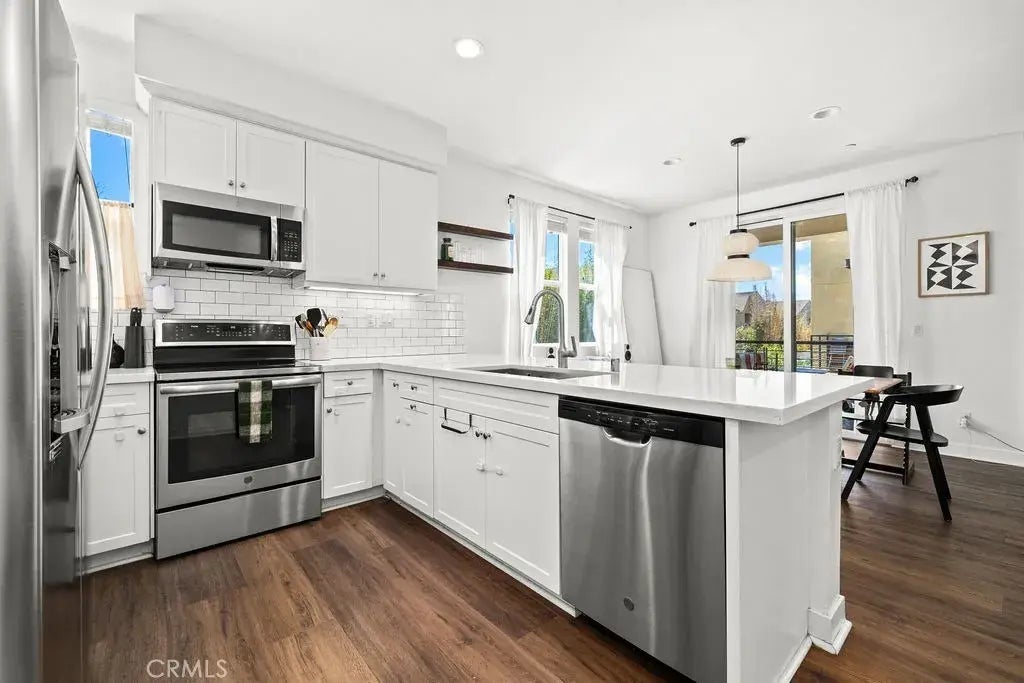 Welcome to 1416 N Harbor Boulevard Unit 6 in the Harborside Collection, a modern townhome community built in 2018 that brings together style, comfort, and convenience in the heart of Santa Ana. This 2bd/2.5ba residence offers a thoughtful layout that feels both open and inviting, beginning with a light filled main level featuring vinyl wood flooring and an open concept design that flows naturally from the living area to the dining space and into the upgraded kitchen. Here you will find quartz countertops, a sleek subway tile backsplash, stainless steel appliances, and crisp cabinetry that create a clean and modern aesthetic while still feeling warm and welcoming. Just off the living space, a private balcony provides the perfect spot for morning coffee or winding down in the evening. Upstairs the primary suite offers a walk in closet and ensuite bath, while the second bedroom and full bath provide flexibility for guests, family, or a home office. A dedicated laundry closet on the upper level keeps everyday chores simple, and a powder room on the main level adds extra convenience when entertaining. The oversized two car garage is a game changer, with direct access, abundant storage, and an EV ready setup, while paid solar panels deliver energy efficiency and long term savings. The Harbor Collection community itself is designed for connection and ease, offering a tot lot for play, a communal barbecue area for gathering, and open green spaces for enjoying the California sunshine. The location is equally appealing, with easy access to the 22, 5, and 405 freeways along with shopp