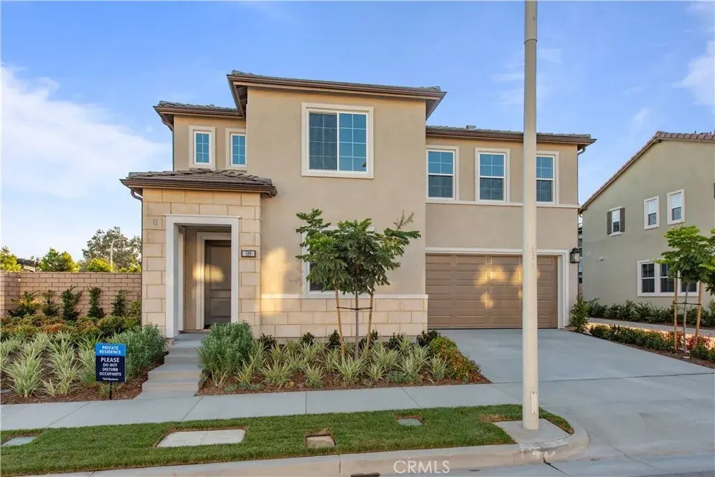 Stunning brand-new 5BR/3BA Toll Brothers home in the highly desirable Vista Rose community, featuring over $100K in luxury upgrades. This corner-lot residence offers exceptional privacy, a bright open floor plan, and upscale finishes throughout. The chef's kitchen boasts quartz countertops, full backsplash, upgraded high-gloss acrylic cabinets to the ceiling, oversized island with breakfast bar, spacious pantry, and a full suite of JennAir appliances including a 42" built-in fridge. Enjoy full-house luxury vinyl plank flooring, paid-off solar panels, decorative glass stair railing, and custom zebra blinds (to be installed). The dramatic 2-story foyer opens to a spacious Great Room and covered California Room. One full bedroom and bathroom are conveniently located on the first floor perfect for guests or multi-gen living. Upstairs features a luxurious primary suite with coffered ceiling, spa-inspired bath with soaking tub, frameless glass shower, dual vanities, and a large walk-in closet. Two additional bedrooms share a dual-sink bath, plus a versatile tech loft with built-in desks and an upstairs laundry room with new washer/dryer. Low-maintenance turf landscaping (coming soon). Soon to be fitted with elegant zebra blinds and a brand-new washer and dryer, the home is positioned on a unique corner lot offering exceptional privacy. Located in the top-rated Placentia-Yorba Linda USD, near Brea Mall, La Floresta, dining, and freeways.
