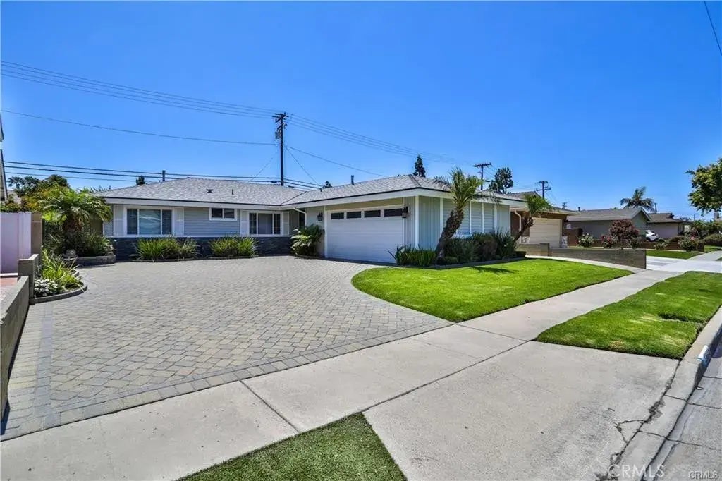 This 4-bedroom, 2-bathroom single-level home offers 1,539 square feet of comfortable living space. Freshly painted interiors and brand-new carpet complement the homes hard-surface flooring. The open layout seamlessly connects the kitchen, dining, and living areas, anchored by a brick fireplace. The primary suite includes a private bathroom, while the three additional bedrooms have ample closet space and share an upgraded full bath with a shower and tub combination. Outside, a covered patio overlooks a large grassy yard with professional landscaping, perfect for relaxing or entertaining. An attached two-car garage with washer and dryer hookups adds convenience.