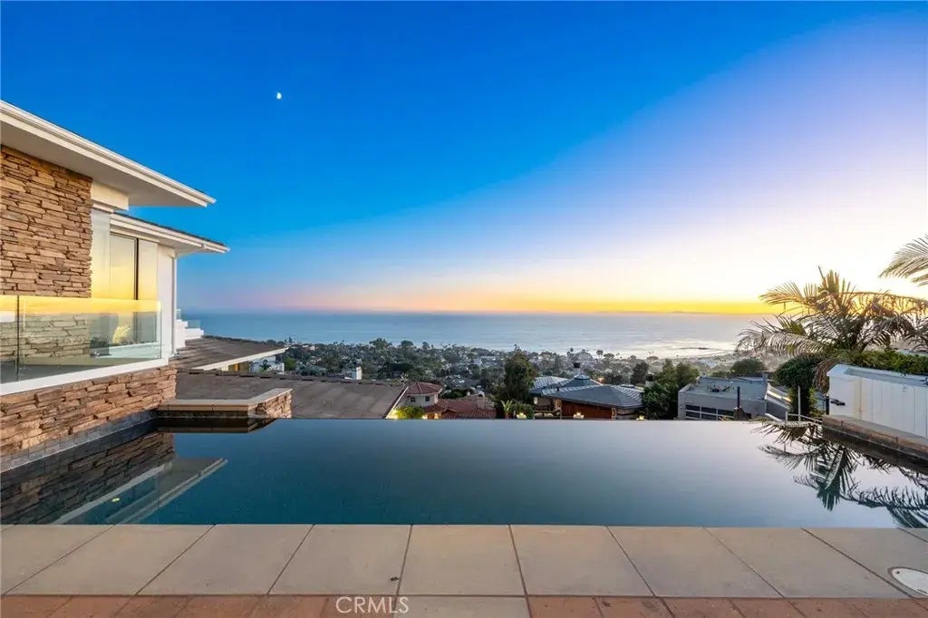 Perched in one of the worlds most celebrated coastal destinations, this rare estate-sized residence in Laguna Beach offers a lifestyle of unmatched luxury and breathtaking beauty. Just blocks from the beach and the vibrant Village, the home commands sweeping panoramic views of Catalina Island and iconic Main Beachan extraordinary vantage point few properties can claim. Spanning over 6,000 square feet of refined living space, this gated estate rests atop a generously elevated one-third acre lot, designed to maximize privacy and showcase the stunning seascape. The exterior features an infinity-edge pool that seemingly spills into the Pacific, a three-car attached garage, and a multi-vehicle motor court, all framed by sculpted hardscape and a curated palette of coastal succulents. Inside, the home is a masterclass in architectural sophistication and custom craftsmanship. Highlights include: a gourmet chefs kitchen with premium finishes, a glass elevator offering ocean views on every ride, exquisite 3/4" thick Brazilian cherry wood flooring throughout for timeless beauty and durability, a dedicated home theater for cinematic indulgence, and fireplaces in the living room, primary suite, and outdoor terraceperfect for cozy evenings by the pool. The layout features three luxurious bedroom suites and a spacious office that easily converts to a fourth bedroom, offering flexibility for guests or remote work. Smart home amenities abound, including: integrated stereo speakers throughout, a sophisticated lighting control system, dual-zone heating and air conditioning, and comprehensive