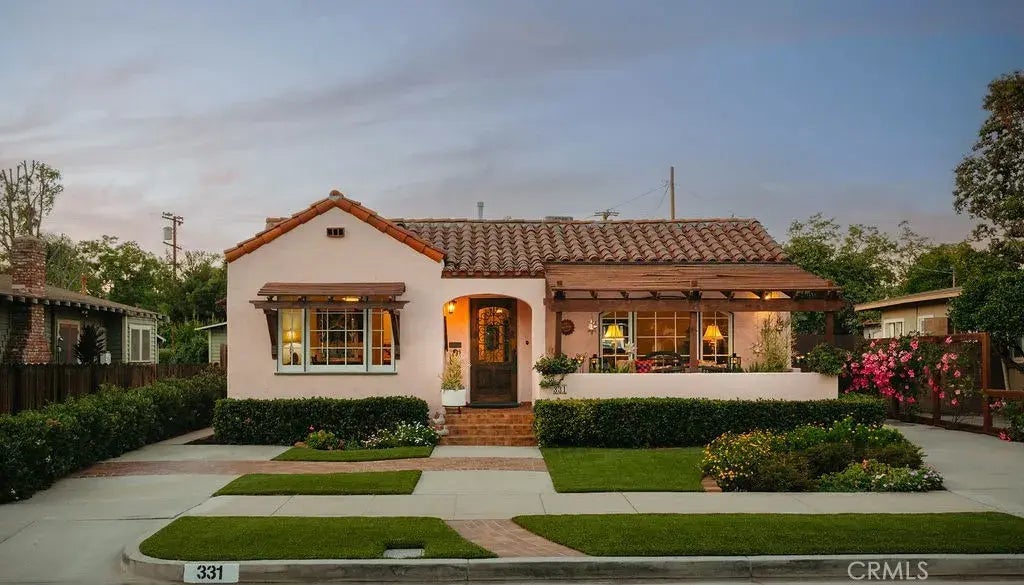 A Rare Spanish Colonial Revival Gem in Fullertons Historic Core. Step into a piece of Fullertons architectural legacy with this enchanting Spanish Colonial Revival residence - a home carefully curated to reflect the elegance and design integrity of the 1930s. Included in the 1978 Fullerton Historic Survey and celebrated among the city's most architecturally significant homes, this timeless treasure seamlessly blends preserved vintage character with refined modern enhancements. Thoughtfully designed across approx. 1,490 sq ft, the home offers 3 bedrooms and 1 bath, with hallmark period details including arched entryways, coved ceilings, wood-framed French pane windows, and original hardwood floors that echo the craftsmanship of a bygone era. Anchoring the living room is a fully restored Batchelder fireplace - a true work of art and a rare architectural centerpiece. The kitchen features a vintage OKeefe & Merritt range, perfectly complementing the homes historic soul. Thoughtful interior touches, including custom Roman shades and draperies, enhance the homes warmth while maintaining its timeless character. The third bedroom enjoys its own private entrance, offering flexibility for guests, a home office, or creative studio space. Outside, a serene and private backyard offers the ideal setting for alfresco dining or quiet retreat, all nestled on a 5,432 sq ft lot along one of Fullertons most beloved tree-lined streets, just moments from the vibrant downtown district. The property also offers rare parking capacity for up to five vehicles, including a garage and additional drivew