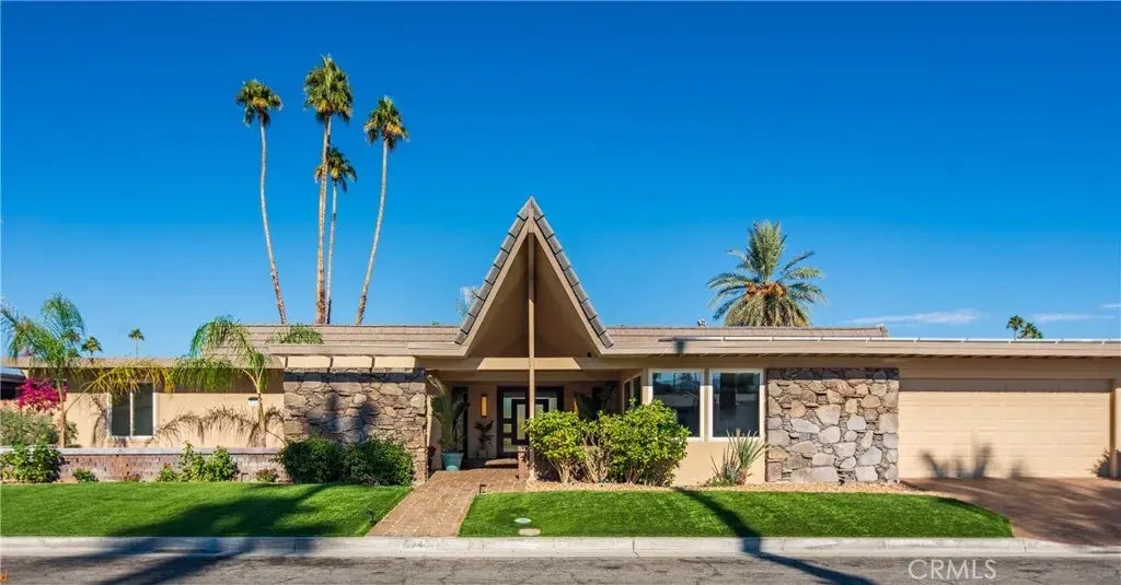 Designed by Donald Wexler ~ Meticulously Renovated ~ 10,000+ SqFt Lot ~ 100 Golf Course Frontage ~ Pool, Spa & Sun Deck ~ 44 Owned Solar Panels ~ Fee Simple Land, No HOA. Welcome to The Royal Singapore, one of Wexlers most unique and celebrated creationsa bold departure from typical mid-century modernism and a playful foray into Polynesian-inspired design. The largest home originally built in Green Fairway Estates5240 E Lakeside is a sprawling 4-bedroom home with two distinct wings. East Wing: A bright and airy Living Room featuring the signature Alexander Cone fireplace and San Jacinto Mountain views. The open Dining Area flows into a sparkling Kitchen with luxury finishes and expansive golf course views. The oversized 2-car garage, laundry, and large fourth bedroom with direct pool access complete this wing. West Wing: Two guest bedrooms, 2 full baths, and a spacious Media/Family Room with a tranquil reading nook. Also includes the 600 sqft Primary Suite, functioning as a private casita with wet bar + mini-fridge, walk-in closet, spa-inspired bathroom, and sweeping pool and golf course views. Outdoors, the rear fence has been legally extended 15+ feet into the fairway, creating a vast greenbelt to maximize the 10,000+ sqft lot. The pool, spa, and sun deck take full advantage of 100 feet of golf course frontage, with views of the mountains and Hope House as your backdrop. Energy efficiency is ensured with 44 owned solar panels. This is more than a homeits a living piece of architectural history, ready for its next steward.