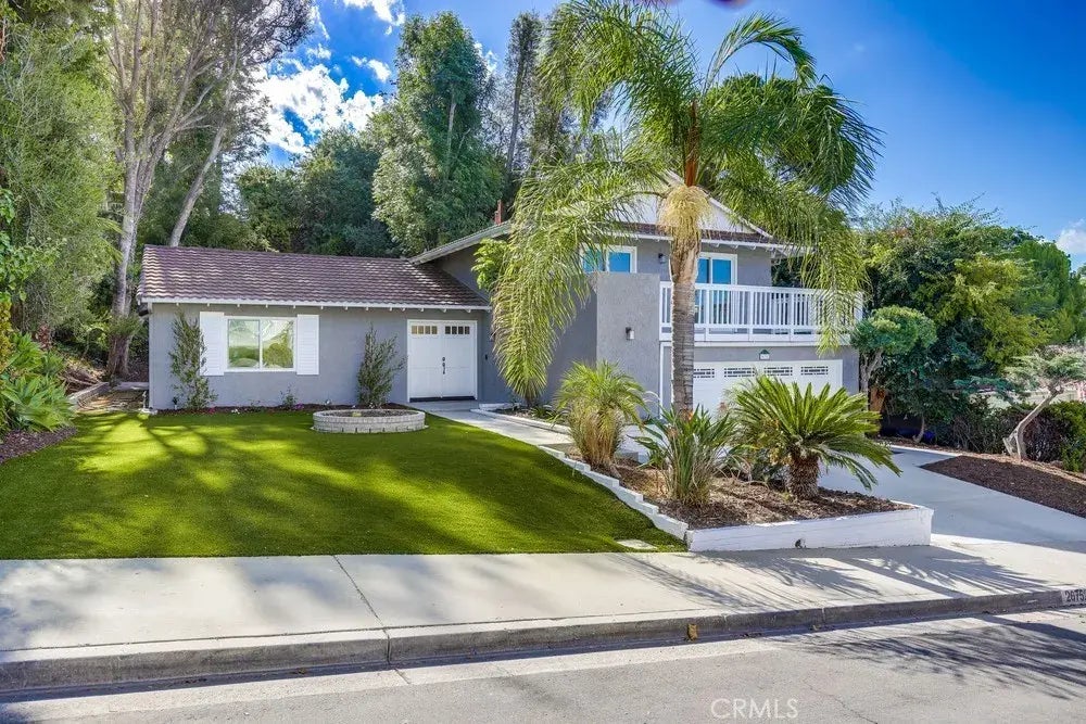 Welcome to this beautifully remodeled home sitting on a huge lot with a view, this property is the perfect blend of modern design, comfort, privacy and location. Offering a master suite upstairs and a bonus suite creating an additional master retreat downstairs, 3 full baths on an expansive 1/4 acre lot with stunning views. Thoughtfully reimagined inside and out, this residence blends modern upgrades with timeless style. The heart of the home features a luxuriously appointed kitchen with quartz countertops, waterfall edge, new beautifully designed cabinetry with highly appointed hardware, stainless steel appliances including a wine refrigerator, lighting, windows, sink and faucet. Throughout the home, white oak luxury vinyl plank flooring (LVP) creates a durable yet stylish flow. Redesigned bathrooms with new vanities, fixtures, and custom showers. A downstairs bonus suite provides a private retreat, perfect as a second master or private guest space. The interior walls and ceilings are complemented by soft smooth finishes, and a full interior repaint in Swiss Coffee and white for a bright, move-in ready atmosphere. New windows enhance natural light and improved style and efficiency, while a brand-new AC system ensures comfort. Curb appeal shines with a full exterior repaint and refreshed trim, paired with updated ultra low maintenance landscaping and hardscape to maximize outdoor enjoyment.