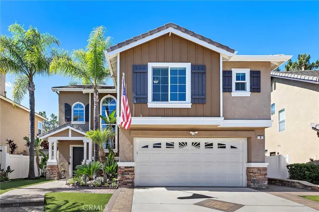Welcome to 8 Goldmine, a beautifully upgraded residence located in the desirable Wagon Wheel community of Trabuco Canyon. This 3-bedroom, 2.5-bath home also features a spacious loft additioncurrently enjoyed as a bonus room and officethat offers the flexibility to be converted into a 4th bedroom and additional bathroom. Inside, the home has been thoughtfully remodeled with todays most sought-after upgrades. The newly renovated kitchen showcases quartz countertops with a waterfall edge peninsula, custom cabinetry, and high-end LG appliances, creating a perfect blend of style and function. Additional improvements include a full PEX repipe, alkaline water system, solar system, new windows, automated window shades, epoxy garage floor, and luxury vinyl plank flooring throughout for a modern and low-maintenance lifestyle. The outdoor space is designed for entertaining and everyday enjoyment, featuring a covered patio ideal for grilling and dining, along with beautifully landscaped grounds enhanced by pavers, flagstone, and low-maintenance turf. This move-in ready home combines comfort, convenience, and modern upgrades in one of Wagon Wheels most inviting neighborhoodsclose to parks, trails, and award-winning schools including nearby Tesoro High Schoolall while being just minutes from Rancho Santa Margaritas shops, dining, and amenities.