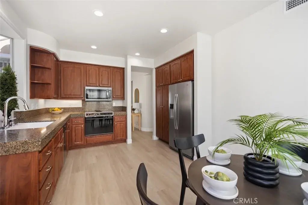 IMPECCABLY APPOINTED... WHAT A GEM... Located in one of South Orange County's Most Highly Sought, Active Lifestyle Communities... Gorgeous PALMIA, a 55+ retirement community like no other. This SUPREME Location - just steps to the clubhouse, pool and sports courts in incredible Villas 1 is a beauty with two bedrooms and two bathrooms and newly renovated. Enjoy brand new: luxury vinyl plank flooring, fresh custom paint, wide baseboards, new blinds, counter tops, fixtures and lighted ceiling fans that all compliment the high ceilings and gorgeous open space, bringing in plenty of natural light through the luxurious sliding doors and windows. This home is truly a design delight... So elegant, yet warm and comforting. A lovely and spacious wrap around patio yard with brand new landscape to enjoy is perfect for backyard entertaining or dining al fresco. Attached 2 car garage with new opener and plenty of storage space. This 24 hour guard gated community offers many amenities to its residents including: an 18 hole putting green, state of the art workout facility, gorgeous clubhouse, pool, spa, tennis, shuffleboard, pickleball, bocce, billiards & so much more. An abundance of planned social activities, classes & outings await you. Also includes cable TV and WiFi. This Property is Truly a Delight.