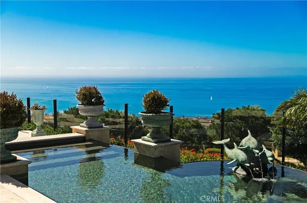 Perched at the top of guard-gated Pelican Crest on a premier wraparound lot, this custom coastal estate delivers unobstructed panoramas of the Pacific, Catalina, Newport Harbor, and white-watersunrises and sunsets alike. Designed for modern indoor/outdoor living, the ~5,268 SF residence offers 4 ensuite bedrooms + office/optional 5th bedroom, soaring volumes, marble finishes, custom lighting, and floorplan that flows from the family room with wet bar to the chefs kitchen and view terraces. The gourmet kitchen is anchored by Calacatta Gold marble, walnut cabinetry, a La Cornue French range with custom hood, twin glass-door Sub-Zero refrigerators, a walk-in wet bar, and a built-in Miele coffee systemcrafted for effortless entertaining. Bi-fold doors dissolve the boundary to the outdoors where a private pool & spa frame the coastline. A serene ocean-oriented primary retreat features a sitting area with custom fireplace mantle, dual boutique-scale closets, and a hotel-inspired bath highlighted by a stand-alone tub. Two main-level bedroom suites enhance livability for multi-generational needs or VIP guests. Outdoors, layered terraces, fire features, and lush landscaping create a private resort setting; inside, multiple fireplaces, an open floor plan, dedicated laundry, and 3-car parking complete the offering. The community has security & guard services and is just moments from Pelican Hill Resort & Golf, Crystal Cove beaches, and Fashion Island dining/shopping.