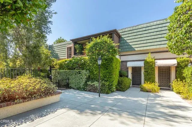 Located within a gated community that was designed by renowned architect Bob Ray Offenhauser, this townhouse offers a fantastic floorplan, is one of the better locations within the complex with mountain views through Northside windows. The home boasts a semi private elevator (shared with the adjoining neighbor) that services every floor, ensuring easy access throughout the property. Situated at the rear of the complex, the residence ensures privacy and is conveniently located near additional parking.On the main level, spacious dining and living areas are beautifully complemented by balconies that extend the living space and provide tranquil views of the lush surroundings. The open layout is perfect for entertaining and makes the home feel spacious and light.The kitchen has been tastefully updated with a large pantry, stainless steel appliances, granite countertops and custom cabinets. This unit features two bedrooms and a versatile third space, ideal for use as a multi-purpose den or home office. The primary bedroom is quite large with a large walk-in closet and bathroom with two separate sinks and countertops. The second bedroom is also ensuite with a three quarter bath attached. There is a powder room located off of the living room hallway.Direct elevator access from the main living areas connects to a spacious private 2-car garage, which also includes laundry facilities and ample storage. A new HVAC system has just been installed.This spacious townhouse embodies refined living in one of Pasadena's most coveted locales.