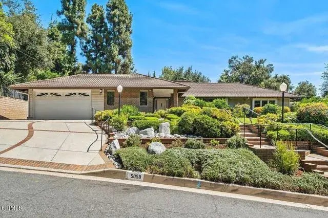 Nestled at the end of a peaceful cul-de-sac in the heart of La Canada Flintridge, this charming 3 bedroom, 2 bath home exudes traditional character and timeless appeal. Set on a meticulously landscaped lot, the home features a grassy front lawn, a two-car attached garage with a rear door, and a welcoming covered porch leading to the front door. Inside, hardwood floors and custom built-in accents flow throughout the expansive layout. The impressive foyer greets you with numerous cabinets and shelving. To the right, the inviting living room boasts a large bay window, a cozy brick fireplace, and space for a dining table. Beyond is the light-filled family room, offering seamless access to the kitchen, with a breakfast nook, and backyard. The private wing of the home includes the primary bedroom, a bathroom, and a conveniently located laundry room. The remaining two bedrooms and a bathroom are situated on the opposite side of the home, offering additional privacy. In the spacious backyard, a built-in barbecue, ample seating options, and a sparkling pool await, making it perfect for entertaining. The versatile pool/bonus room can be transformed into a private office, gym, or studio. This home blends comfort, style, and outdoor living in a prime La Canada Flintridge location.
