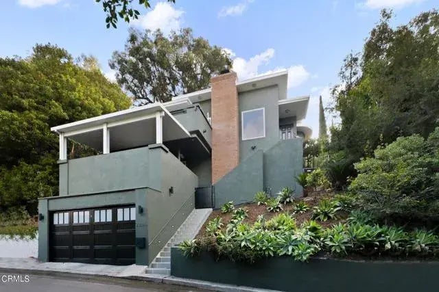 A west-facing gem with panoramic views of the Hollywood Hills. Perched up to create privacy from the street, this 3-bedroom, 2-bathroom home offers a light-filled living space. Enjoy the open concept living area, featuring hardwood floors, recessed lighting, and a decorative fireplace. The airy kitchen includes stainless steel appliances and ample counter space. The primary bedroom includes a private balcony perfect to enjoy your morning coffee and sunsets. A separate office space is ideal for those working from home. Step outside to the backyard patio ideal for entertaining, plus a sunroom that can be used as an art studio. Additional amenities include a second outdoor deck, washer/dryer in unit, central air conditioning, 2 car garage, and a private entrance. Easy access to the 101 freeway.