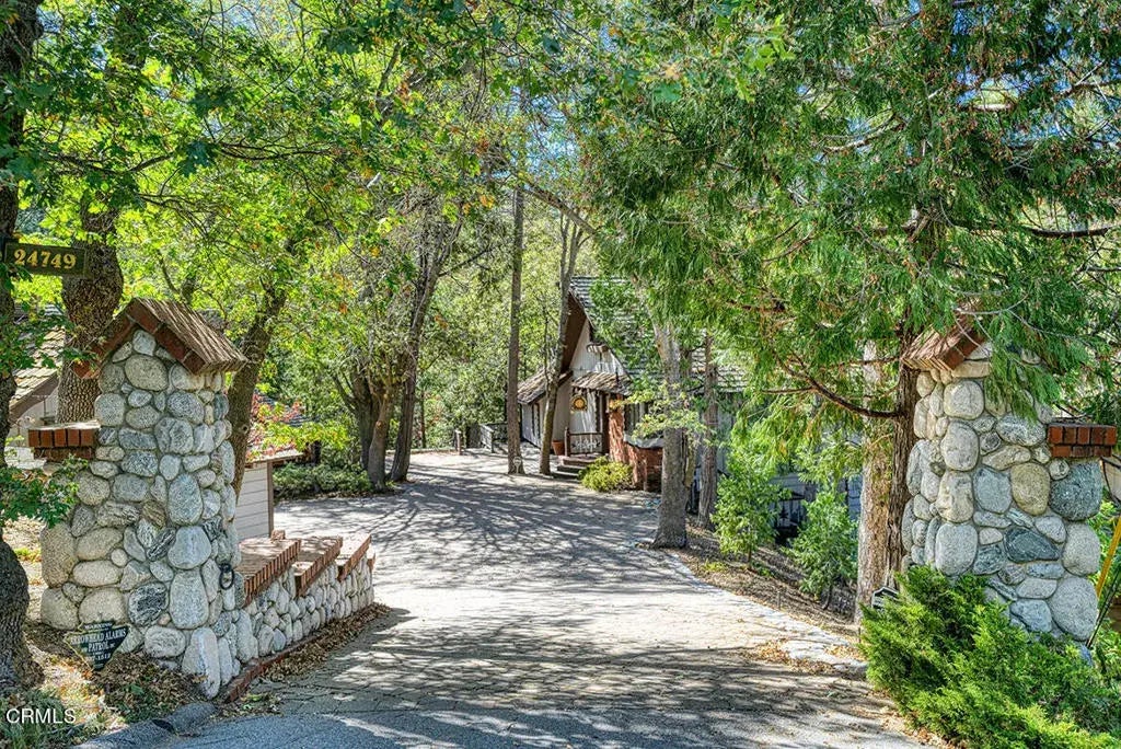 2 Houses on 3 Lots plus a Huge Finished Garage and Workshop near Lake Gregory. Do not miss this rare opportunity at a great price. Old World details and stained-glass windows set these houses apart. The larger of the 2 houses, 4 bed 2 bath, 1979 sq ft., has an open concept floor plan and a wall of windows. The primary suite is located on the main floor with an additional 3 large bedrooms, and bath on the lower floor. Each room opens to the multiple decks, patios and back yard on the property. One of the bedrooms is currently being used as a den and laundry. The loft bar is the perfect place to spend evenings entertaining family and friends at the game table. Just across the custom paving stone driveway sits the second house 3 Bed, 2 Bath. The main living area and bedroom (currently being used as an office) and bath are on the main level. Large windows look out onto the additional wooded lot that leads down to a creek. 2 bedrooms and a large storage room (currently being used as an art studio) are on the lower floor. A large patio area with exterior storage closets are accessible from the lower floor. A spectacular 2000 sq ft custom garage, with inspection pit and compressor outlets, is big enough to house at least 4 cars. A large, attached workshop with fireplace and office complete the compound. The large paving stone driveway plus 3 additional parking spaces on the street allow for ample parking. Compound includes 24749 Basel Dr, 24751 Basel Dr. and lot APN 0340-031-10-0000.