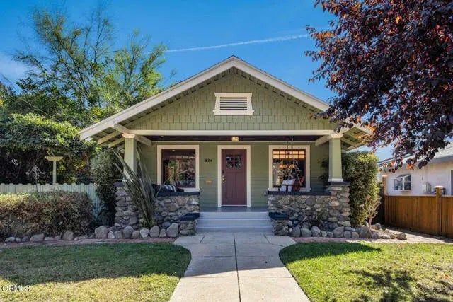 On a tree-lined street in vibrant Normandie Heights, this beautifully restored 1911 Craftsman bungalow is brimming with character. The cheerful neighborhood setting features an array of pride-of-ownership homes and it's just blocks away from local favorites like Washington Park, Seed Bakery, pizza shops, and even a ceramics studio. As you approach, the home's tremendous curb appeal will make your heart skip a beat. A charming porch swing invites you to unwind with a nice glass of wine while you enjoy the cool evening air. Inside, you're greeted by a warm, spacious living room anchored by a brick fireplace. The elegant wood paneling adds a touch of sophistication, making it the perfect spot to host friends or relax on a quiet evening with your favorite show. The formal dining room offers an ideal space for joyful meals. Just beyond, the kitchen exudes vintage charm and the whole house showcases gorgeous original detailing including hardwood floors, moldings, wainscotting, built-ins, and more. Two cheerful bedrooms are filled with light and they share a spacious bath. The gated backyard includes an enchanted garden where you'll find a wisteria-covered arbor, rock roses, loquats, Jerusalem Thorn tree, trumpet flowers, and concord grape vines. Front and rear grassy areas along with a back-covered patio create wonderful opportunities for entertaining and a newly installed sister foundation offers peace of mind. At 834 E Ladera, you're embraced by thoughtful design, inviting spaces, and rich craftsman architecture, all of which combine to create a true sense of home.