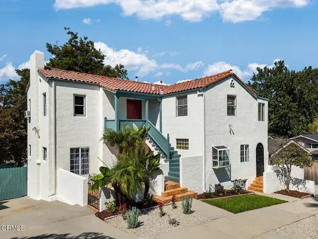 Welcome to 1443-1445 Mount Pleasant Street, a striking Spanish-style duplex situated in one of LA's most vibrant neighborhoods. With both units delivered vacant, this is a unique chance to create your dream living space and/or investment property in the heart of Highland Park. As you enter the main unit, you'll be welcomed by a spacious, light-filled living room featuring wood-beamed ceilings, a decorative fireplace, and built-in bookshelves. French doors open to a bright sunroom overlooking the backyard; ideal for a home office, den or playroom. Down the hall, you'll find two generously sized bedrooms, each with ample closet space and plenty of natural light, along with a full bathroom. Venture downstairs to discover a versatile flex space--perfect for a home office, guest suite, or creative workshop--complete with its own entrance and a covered patio that opens to the expansive backyard. The outdoor area is ready for your imagination, offering plenty of room for entertaining, gardening, or soaking up the California sunshine. The upstairs unit features one bedroom and one bath, with a spacious living room that boasts treetop views, and even a glimpse of the Griffith Observatory. The adorable kitchen overlooks the lush backyard, while the bedroom offers an abundance of closet space and a sunroom of its own. A hallway nook adds further flexibility for a home office, reading corner, or additional storage. The extended driveway opens up to the large back yard and provides plenty of parking, plus the detached two-car garage offers even more parking or storage space. This proper