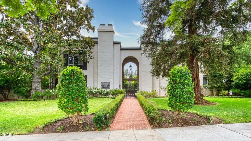Immerse yourself in an extraordinary blend of upscale elegance and comfort in this spacious, two bedroom, three bath luxury condo. Tucked away upstairs, this end unit is set back from the boulevard, extremely quiet, and offers more of a single family home feel. A gracious double door entry introduces a stately living room with nine foot ceilings, a handsome fireplace, an abundance of natural light and sliding doors to a welcoming covered patio. A charming formal dining room with chandelier also opens to the patio, making these beautiful rooms ideal for entertaining. A well equipped, bright kitchen has beautiful tree views, generous granite counters, abundant cabinetry, top appliances and tile floor. There are two spacious bedrooms with exquisite high ceilings and tall windows, updated ensuite baths and ample closet space. Leading past a guest bath is an attractive study with built-in cabinetry, shelves and bay window, and an indoor laundry area with washer, dryer and cabinets. Square footage was professionally measured at 1955 sq ft. Beautifully manicured formal grounds with flowering shrubs and trees. This property has two covered parking spaces in a secure lot and is centrally located close to Old Town, transportation and freeways, offering a suburban respite, while ensuring that dining, shopping, and entertainment options remain just a stone's throw away.