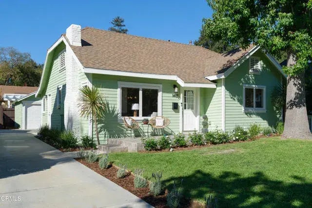 Welcome to this beautifully remodeled 1924 Craftsman home, situated in the desirable Normandie Heights neighborhood of Pasadena. This charming 2-bedroom, 1-bathroom residence has been thoughtfully updated, blending modern amenities with timeless details. The professionally landscaped front yard enhances the home's curb appeal, leading you to a welcoming front porch and into the light-filled living room. Inside, wood-like flooring flows throughout the open floor plan, complemented by recessed lighting and a custom-tiled decorative fireplace with a sleek mantle, adding a contemporary touch to the classic Craftsman design. The living room seamlessly connects to the dining area, which features a modern hanging light fixture and French doors that open to a covered patio and grassy backyard, perfect for indoor-outdoor living and entertaining. The fully remodeled kitchen boasts quartz countertops, shaker-style cabinets, stainless steel appliances, and a custom-tiled backsplash. A laundry closet with a side-by-side washer and dryer is conveniently located within the kitchen space. On the north side of the home, a fully updated bathroom sits between the two bedrooms. The bathroom features a beautifully tiled shower-tub combination and a modern single-sink vanity. At the rear of the home, a versatile bonus room offers the ideal space for a den, home office, or guest room, providing flexibility to suit your needs. The backyard is a true highlight, offering a mix of covered and uncovered patio areas, perfect for entertaining or enjoying quiet moments outdoors. The lush yard completes t