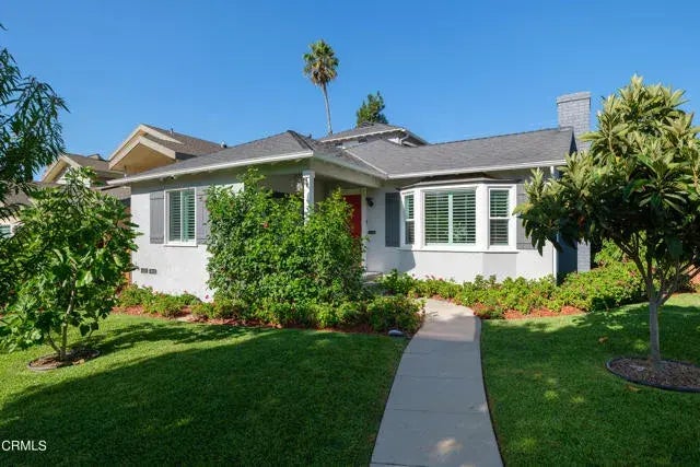 Nestled on a corner lot in the desirable Presidential Streets of Pasadena, this exceptional home exudes timeless appeal & meticulous care. The journey begins at the curb, where a blooming grapevine archway welcomes you into the pristinely landscaped, fully fenced front yard. As you approach, the classic red door beckons you inside. The living room welcomes you with original hardwood floors, tray ceilings & a gas fireplace with a tiled surround & mantel. A dual-paned bay window bathes the room in natural light, while built-in shelving & cabinetry along one wall provide both style & functionality. The living room flows into the dining room, featuring crown molding, hardwood floors, wainscoting & access to a covered outdoor patio, perfect for alfresco dining. The kitchen is a delightful blend of classic charm & modern convenience, boasting blue-tiled countertops, a cozy breakfast nook & a corner sink with windows overlooking the backyard. The kitchen also connects to a mudroom with backyard access & leads to a family room with hardwood flooring, crown molding, wood-louvered shutters & a ceiling fan. Also, under the staircase to the private primary suite, you'll find ample storage & a laundry closet with a stackable washer & dryer. The main floor also has 2 bedrooms & a bathroom.The first bedroom has hardwood flooring, good-sized closet space & wood-louvered shutters. The second bedroom includes hardwood flooring, a ceiling fan & a mirrored closet with built-in shelving. The hallway bathroom offers a separate tub & a custom tiled shower stall, a single-sink vanity & tile floori