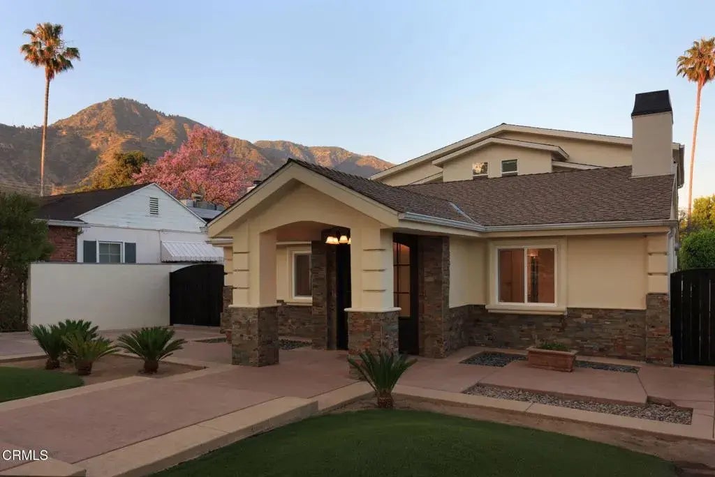 This thoughtfully updated contemporary Mediterranean sits above New York Drive on Altadena's coveted Presidents Streets with a backdrop of the majestic San Gabriel Mountains. This floor plan leaves nothing left to be desired! On the main level are two bedrooms which both have their own adjacent bathrooms, a formal living room, dining room, completely updated kitchen, laundry closet, and a family room that leads straight out to the back patio and massive backyard. Upstairs are the primary suite and the fourth bedroom, both which are en-suite. With 4 generously sized bedrooms and 4 bathrooms across 2,800 SF of living space, along with a detached, 440 SF guest suite/studio with 1 bath and a walk-in closet, this property is ideal for comfort and entertainment and welcomes a variety of living arrangements and possibilities! No details were spared in the light-filled kitchen, which comes complete with stainless steel appliances, ample cabinet and pantry space, French door refrigerator by Liebherr, and a reverse osmosis water filter. The backyard is the ultimate entertaining space with a covered patio, outdoor kitchen and BBQ grill, and a covered deck perfect for al-fresco dining. Property is fully gated and additional features include Property is fully gated and additional features include plenty of storage, lots of driveway parking, a Tesla charger, tankless water heater, and attic space. Enjoy all of Altadena's charm in this unbeatable location close to hiking trails, local eateries, and markets!