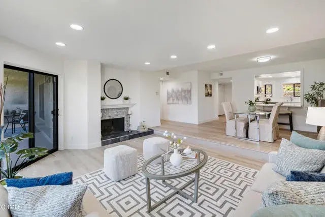 Are you searching for an exquisite primary residence, a vacation getaway on the California coast or a serene place to retire with the soothing sound of waves and a refreshing ocean breeze? Look no further. Nestled in the sought-after Surfside IV gated community, directly across from Port Hueneme Beach, this newly renovated single-level condo offers the perfect blend of luxury and relaxation. This spacious 4-bedroom condo welcomes you with waterproof wood-like laminate flooring, recessed lighting, and modern finishes throughout. The inviting entry features a large closet and leads to a beautifully remodeled kitchen with quartz countertops, crown molding, and stainless steel appliances, including a new 5-burner gas range, oven, dishwasher, and refrigerator. A convenient pass-through with an eat-at bar counter connects the kitchen to the open dining and living areas, perfect for entertaining. The step-down living room is bathed in natural light from a large picture window and sliding door that opens to a private back patio. A decorative fireplace with a slate tile hearth and tile surround adds warmth and charm to the space. The first of four bedrooms, located off the living room, boasts a large closet and sliding doors to the patio. Down the hallway, you'll find another spacious bedroom with the same elegant flooring. Across from this room is a full bathroom featuring floor-to-ceiling tile, a single-sink vanity with tile countertops, and tile flooring. The hallway also houses a laundry closet with a side-by-side washer and dryer and built-in cabinets for added convenience. At