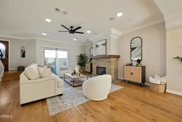 Experience the perfect blend of elegance and affordability in this stunning coastal townhome, located just three blocks from the beach and the renowned Riviera Village. This serene residence is beautifully designed with wide-plank hickory hardwood floors, crown molding, recessed lighting, fresh paint, new carpet, wood shutters, and charming rustic wood and wrought-iron accents.The first level features an open-concept living space, complete with a natural stone fireplace, in-wall speakers for entertaining, and a private patio ideal for indoor-outdoor living. The updated kitchen boasts custom cabinetry, granite countertops, a tumbled marble backsplash, and stainless steel appliances, seamlessly connecting to the dining area with a Juliet balcony that welcomes refreshing ocean breezes. Stay comfortable year-round with central air conditioning.Upstairs, you'll find three spacious bedrooms with vaulted ceilings and a secondary full bathroom. The primary suite offers a peek-a-boo ocean view, ample closet space, and a luxurious ensuite spa bath with a jetted tub, a separate shower with a seat, and a dual-sink vanity adorned in refined travertine stonework.The oversized two-car garage includes a bonus room with a brand-new washer and dryer, perfect for an office, home gym, craft room, or extra storage. Enjoy the ultimate beach lifestyle with close access to the Esplanade, The Strand bike path, a vibrant Farmer's Market, and over 300 shops and restaurants in Riviera Village.This home is located in a top-rated school district, serving Alta Vista Elementary, Parras Middle School, and