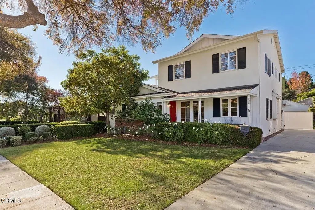 Welcome to this Colonial-style residence that seamlessly blends classic charm with contemporary comforts. Located in the coveted San Rafael area of West Pasadena on one of the prettiest of tree-lined streets, this captivating home boasts thoughtfully designed interiors that are both stylish and keep functionality in mind, making it the perfect haven for relaxation and entertaining. Step onto the welcoming front porch and enter a timeless living room, featuring a charming fireplace, built-in shelves, crown molding, and rich hardwood floors. The tasteful kitchen, perfectly suited for every culinary creative, is adorned with Carrera marble countertops, a designer tile backsplash, and stainless steel appliances. The breakfast peninsula, with counter seating and a wine refrigerator, seamlessly connects to the light-filled family room. French doors open to an expansive deck, perfect for outdoor dining, entertaining or relaxing in the tranquility of the lovely rear garden. Upstairs, a spacious primary bedroom suite with a vaulted ceiling awaits alongside two additional bedrooms with a delightful hallway bathroom and laundry closet. Downstairs is a fourth bedroom and a full hallway bath. Enjoy the nearby amenities, including San Rafael Park, Little Flower Bakery, the Arroyo Seco, and Old Town Pasadena, all while residing in this enchanting neighborhood.