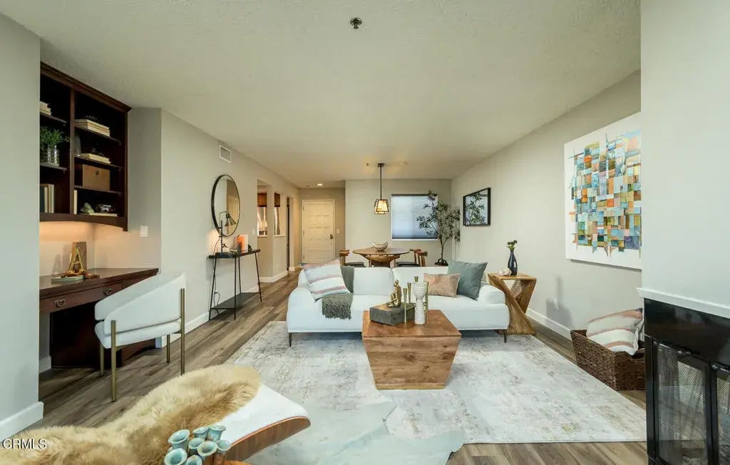 Welcome to 625 E Del Mar Blvd #304 located in the Pasadena Playhouse District. This beautifully updated top-floor condo offers stunning San Gabriel Mountain views. The spacious living room & dining area features newer engineered wood flooring, gas fireplace with remote control, custom walnut built-in desk with shelving above for books, etc. and private balcony with views. A large dining area space that comfortably accommodates a big table with six chairs for entertaining family and friends. The kitchen has a beautiful Arts & Crafts look with quality craftsmanship! A chef-inspired new kitchen in 2020 boasts Artisan factory custom tile from South Carolina, cherry cabinetry with self closing drawers, Italian terrazzo tile flooring and recessed lighting. Premium appliances including a Miele dishwasher, GE profile microwave, refrigerator and 4-burner gas range/oven, gorgeous Caesarstone countertops (honed finish), a large, deep kitchen sink and built-in desk area. The primary suite includes a custom walk-in closet from California Closets, textured glass privacy door between bedroom and bathroom for privacy and light. Recessed lighting in bathroom. The luxurious bathroom has a dual-sink vanity, with a sitting area in the center and three mirrors. An attractive stone countertop with tile flooring and new lighting underneath cabinetry for added beauty, day or night! A large second bedroom with custom California Closets and engineered flooring. You will also enjoy the stylish 2020-renovated guest bathroom that includes Italian terrazzo tile flooring, marble countertop, soaking batht