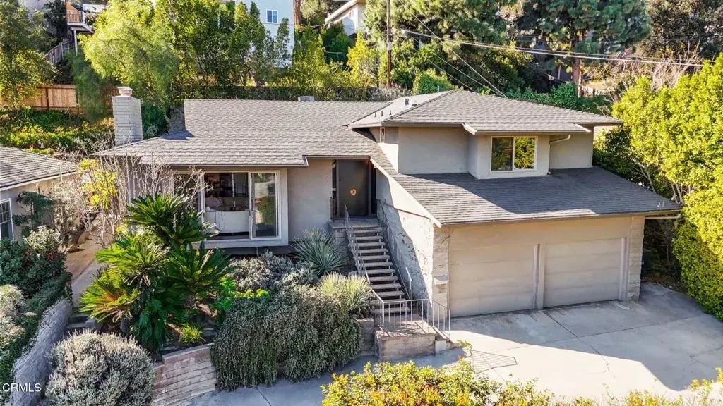 At 333 Malcolm Drive you'll find a Mid-Century split-level offering more than just a great separation of space. Here you'll enjoy layers of opportunity to relax, play, and create lasting memories. Nestled in Pasadena's highly sought-after San Rafael Hills, the home offers a peaceful setting just moments from the treasured Arroyo Seco Trail. As you enter, the sunken living room with its soaring ceiling evokes a sense of awe. Framed by panoramic views of the lush surroundings, your day starts on an inspiring note as you watch the sun peek over the mountains. Nearby sits the formal dining room and well-appointed kitchen. Here, you'll put the final touches on your bearnaise while sharing laughter with dear guests gathered around the table. One bedroom conveniently rests on the main level and two more, plus the primary suite, are found on the top level. A cozy sit-in window in the primary is perfect for savoring a good book in the golden glow of the afternoon sun. Stairs heading down from the main level reveal an extra bonus room. Secluded from the rest of the home, this versatile space is ideal for an art studio or exercise room. Outside, the backyard's verdant, easy-care hillside offers a cool respite from the afternoon sun, naturally minimizing residual heat during the warm summer months. 333 Malcolm Dr is the perfect backdrop for a life filled with tranquility and simple joys.