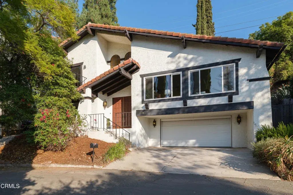 Nestled in the prestigious Chevy Chase neighborhood of Glendale, this updated Spanish-style home offers stunning views of the San Rafael Hills & Chevy Chase Country Club. With a spacious multi-level design, vaulted ceilings & elegant architectural details, this home is both sophisticated & inviting. Upon entering through the double doors, you are welcomed into a formal tiled entryway. A short flight of stairs leads to the first of 2 living rooms, featuring soaring vaulted ceilings, engineered hardwood flooring & expansive picture windows framing golf course & mountain views. Through an arched doorway, the formal dining room flows seamlessly into the kitchen, which boasts granite countertops, tile flooring, a double wall oven, electric cooktop with range hood, dishwasher, tiled backsplash, recessed lighting & a charming breakfast nook with a sliding glass door leading to the backyard. Adjacent to the nook, louvered doors conceal a convenient laundry area with washer & dryer hookups. To the left of the entry landing, French doors open to the expansive primary suite, a true retreat with picture windows, a decorative floor-to-ceiling tiled fireplace with a gas connection, engineered hardwood flooring & a spacious walk-in closet. The ensuite bathroom features an oversized custom-tiled tub & shower combination, an extended single-sink vanity with granite countertops & recessed lighting. A sliding glass door provides private access to the side & backyard. This level also includes a well-sized bedroom with ample closet space & an adjacent full bathroom with a tub & shower combinati