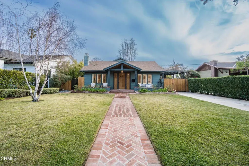 This Northeast Pasadena neighborhood is truly a hidden gem. Nestled on a beautiful tree lined street is a newly renovated 1922 bungalow with stunning mountain views and so much to offer its new family starting with its incredible curb appeal! The original windows reflect the golden hour so beautifully as you approach the large brick front porch and hand carved craftsman style door. A lovely formal living room welcomes you home with the warmth and charm of the original fireplace and whimsical wallpaper. Hallway leads to a quaint home office/nursery as well as a playful powder room along with two large guest bedrooms and a full bath with tub, shower and marble topped vanity. The primary bedroom offers a nice walk-in closet and en suite bath with fern green shower tile, big double vanity, and french doors that lead you to the backyard deck. The open floor plan is where everyone will congregate and includes a large family room, formal dining area with built-in banquette, and a chef's kitchen, gorgeous custom cabinetry, quartz counters, a fantastic island, vegetable sink, stainless appliances, beverage fridge, tons of storage and direct access to the deck. A handsome ADU includes a full kitchen, dining area, living room, and another sizable bedroom and bath, ideal for the in-laws, guests or a great rental opportunity. It also offers a dedicated yard space with a firepit and seating. The main backyard includes a thoughtfully tiered entertainment space with an upper wooden deck, and a concrete patio ideal for outdoor dining and lounging. The lower yard offers lots of grass for the