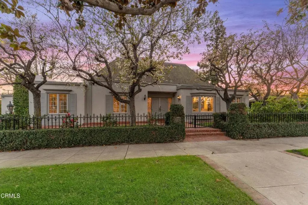 Back on the market - no fault of the Seller! Step into the epitome of refined elegance with this thoughtfully expanded Arcadian Style home with French influences. Situated on a professionally landscaped corner lot, the property exudes charm from the moment one passes through the pedestrian gate, with a brick walkway leading to an impressive double front door. Upon entry, the foyer greets one with exquisite onyx flooring & bespoke light fixtures, setting the tone for the sophistication within. To the left, the formal living room dazzles with a stately fireplace and crowned with a striking Schonbek crystal chandelier. On the right, the expansive 'great room' seamlessly combines the dining area, family room, & kitchen into a luxurious yet functional space.The dining area showcases a picturesque bay window with built-in seating, while another Schonbek chandelier adds a touch of opulence. The chef's kitchen features custom cabinetry, top-of-the-line Wolf stainless steel appliances, and a sleek breakfast bar with an induction cooktop, perfect for 'shabu shabu'. The family room boasts a show-stopping feature wall with a black granite fireplace, elegant wallpaper, & a large sliding French door that open to the covered patio and shimmering pool. Additional conveniences include adjacent custom cabinetry with pull-out shelves, a dry bar complete with a Sub-Zero wine fridge holding up to 132 bottles, & a chic powder room. The private bedroom wing is both functional and serene. Bedroom suite 1 features two closets, built-in shelving, & a spa-like bathroom with a double vanity and a Roma