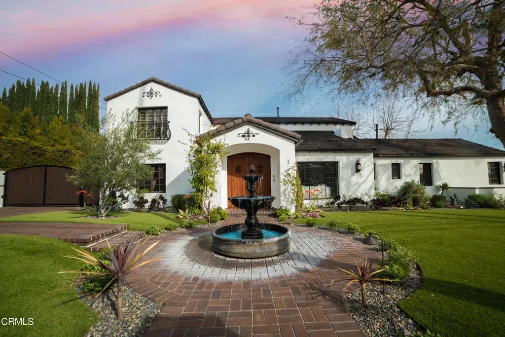 This Grand 1926 Spanish-style estate in La Canada sits on a half-acre lot and features a main house, guest house, and a separate structure for garage and storage. The home blends classic character with modern updates throughout, including a reimagined front yard designed by Santa Barbara artist Jeff Debouet. Inside, the formal living room boasts an art deco fireplace, while the chef's kitchen is equipped with high-end appliances, a Thermador 6 burner cooktop and double oven, a Subzero refrigerator and more. A huge walk-in pantry has ample storage, and a 6 x 9 island is perfect for entertaining. The main house has 4 bedrooms, 2.5 baths, and an office, with a luxurious primary suite on the second floor featuring a balcony with mountain view and a stunning bath. The dual vanity, soaking tub and double shower are exquisite . A second guest suite is located on the first floor overlooking the pool. The superb finishes, window coverings and layout are easily seen but the unseen advanced home systems are the true hidden gems to experience. There is an abundance of advanced features, such as newer dual-zoned HVAC, reverse osmosis water filtration, copper plumbing, LED lighting, 200 amp electrical service, tamper resistant outlets, Newer attic insulation, retrofitted foundation, and much is controlled with a swipe of the finger using Samsung Smarthings smart home system. The estate also includes a 763-square-foot one bedroom guest house with laundrty and kitchenette and a 226-square-foot storage room connected to the two car garage. The total square footage is 4,731 SF. (The sq. ft w