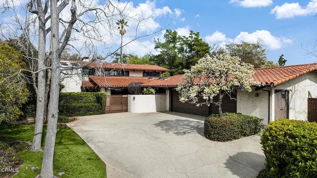Secluded, private and serene, 1340 Oak View Avenue is a bright Spanish style home in the premier Huntington Library estate area of San Marino on a quiet cul-de-sac. Sited behind gates this special property consists of a spacious 5 bedroom / 5 bath residence with pool and north / south tennis court on 3/4 of an acre. The attractive foyer opens on the left to a grand living room with an impressive fireplace, soaring ceiling and an abundance of dramatic windows with garden views; a wet bar is tucked in at the living room foyer landing. The hallway then proceeds on the right to the formal dining room with elegant chandelier and windows overlooking the front courtyard, and then to the attractive Spanish tiled gourmet kitchen with center island, and to a large great room with Spanish tiled fireplace, skylights and wet bar. A one-bedroom suite and two bedrooms that share a bath are adjacent with views of the back garden. Beyond the kitchen are the laundry and a back bedroom and bath. A three-car attached garage completes the first level. Upstairs, the primary suite has an office / library with fireplace, a large primary bedroom and a generous primary bath with a tub, shower and commode flanked by two separate Pulman sink and closet areas. Ideal for entertaining, the exterior offers a patio with fire pit overlooking the pool, a tennis court and lovely mature plantings. Located close to Lake Street shopping, freeways, Polytechnic School, and Caltech, 1340 is wonderful!