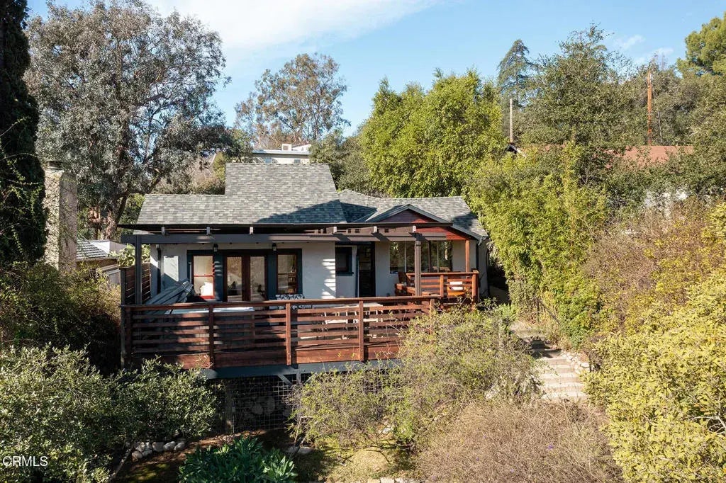 Have you been searching for a hillside retreat with character, charm, and unbeatable views? Welcome to 907 Crestwood Terrace, a hidden gem perched in the hills just at the border of Highland Park and Eagle Rock. Built in 1909, this two-bedroom, one-bathroom bungalow is the perfect blend of vintage charm and modern comfort. As you make your way up the front steps, you'll be welcomed by lush greenery, mature plants, and a tranquil pond. Inside, you'll find beamed ceilings and large windows, which flood the home with natural light, creating a warm and inviting atmosphere. The open living and dining areas flow into an updated kitchen with stainless steel appliances, while a laundry room at the rear provides convenient access to the backyard garden and a footpath leading to the rear entrance. The sunken primary bedroom is a dream, featuring French doors that open onto a spacious covered deck--the perfect spot to soak in the stunning hillside views or unwind in the hot tub. A bonus loft adds to the charm and is perfect for a creative space or cozy reading nook. A stylishly remodeled bathroom, and second bedroom, round out the interior. Sitting on a 7,519 sq. ft. lot, the home also includes a detached two-car garage and ample outdoor space for gardening, entertaining, or simply enjoying the peaceful surroundings. And it's just minutes from local favorites like Found Coffee, Cindy's, The Fable, Little Flower, and more.