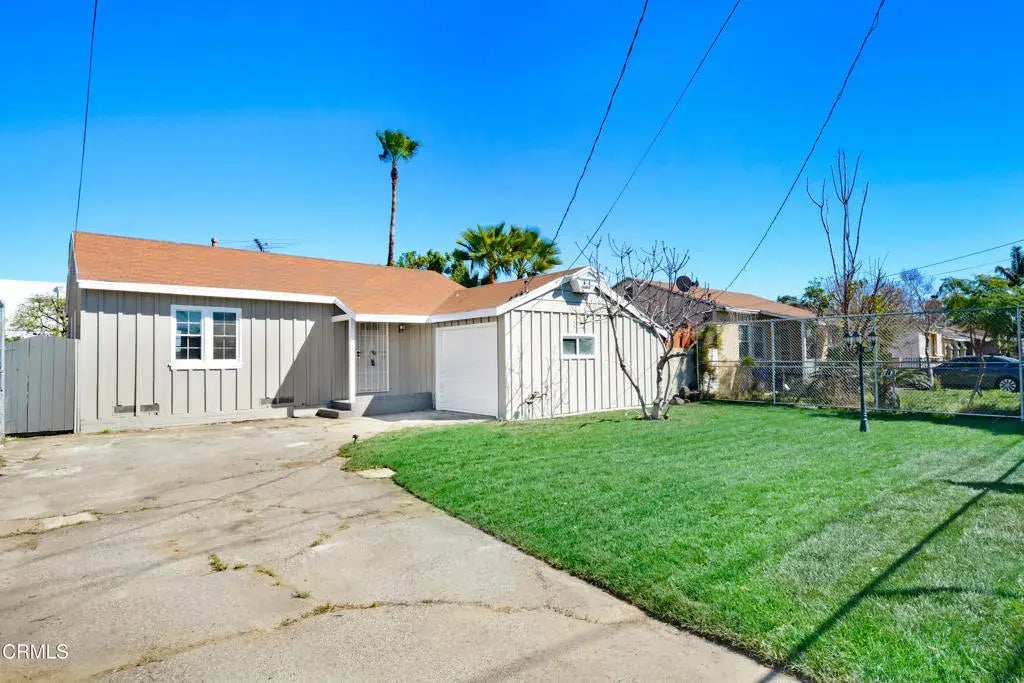 Welcome to this charming 2-bedroom, 1-bathroom home nestled in the heart of Arleta! This beautifully refreshed home offers an inviting and bright interior with modern finishes and a classic touch. The spacious living area features recessed lighting, large windows that flood the space with natural light, and attractive wood-style flooring that flows seamlessly throughout. The kitchen is a true highlight, boasting sleek grey cabinetry, white marble-style countertops, and updated stainless steel fixtures that make cooking and entertaining a delight. Both bedrooms are generously sized with ample closet space and plenty of light, providing a serene retreat at the end of the day. Step outside to enjoy the expansive backyard, a blank canvas perfect for gardening, outdoor dining, or simply soaking up the California sun. The large lot offers endless possibilities for customization, whether you envision a lush garden, a play area, or an outdoor entertainment space. The exterior of the home features a charming facade with a fresh, modern look, complete with a neatly manicured front lawn and a convenient driveway with ample parking space. This home is conveniently located near schools, parks, shopping, and dining, providing the perfect blend of suburban tranquility and urban convenience. Don't miss the opportunity to make this delightful home your own!