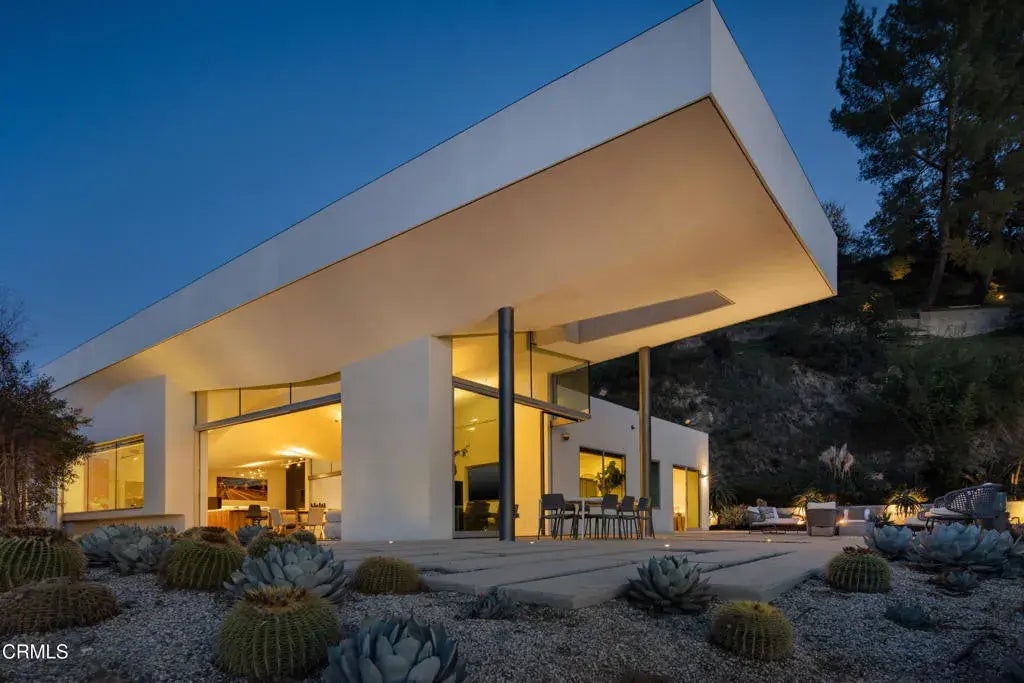 Designed by the award-winning Griffin Enright Architects, this 2016-built masterpiece seamlessly merges cutting-edge technology with sophisticated modern design, all while showcasing sweeping views of the Pasadena hills. Thoughtfully crafted for privacy and openness, the home is bathed in natural light and offers seamless indoor-outdoor living.Beyond the private gated entry, an expansive open-concept living space unfolds, framed by floor-to-ceiling glass that captures breathtaking vistas. The spacious family room, complete with a built-in theater, flows into a sleek designer kitchen featuring top-of-the-line Gaggenau appliances, a walk-in pantry, coffee nook, and bar. A secluded alfresco dining area with a built-in grill extends from the kitchen, while the formal dining and living areas open onto an expansive deck--ideal for entertaining or quiet relaxation. A dramatic skylight spans the main living area, further enhancing the home's architectural brilliance. Every aspect of this home is fully automated, allowing you to control lighting, shades, TVs, speakers, climate, security system, and entry gates--all from your phone. Whether setting the perfect ambiance with a touch or ensuring security from anywhere, this residence offers a truly effortless lifestyle. The primary suite is a tranquil retreat with a fireplace, spa-like ensuite, and a private terrace. Two additional en-suite bedrooms provide comfort and flexibility--one with direct patio access to multiple lounge areas and a fire pit for refined outdoor gatherings. Sustainable features enhance this modern home, includin