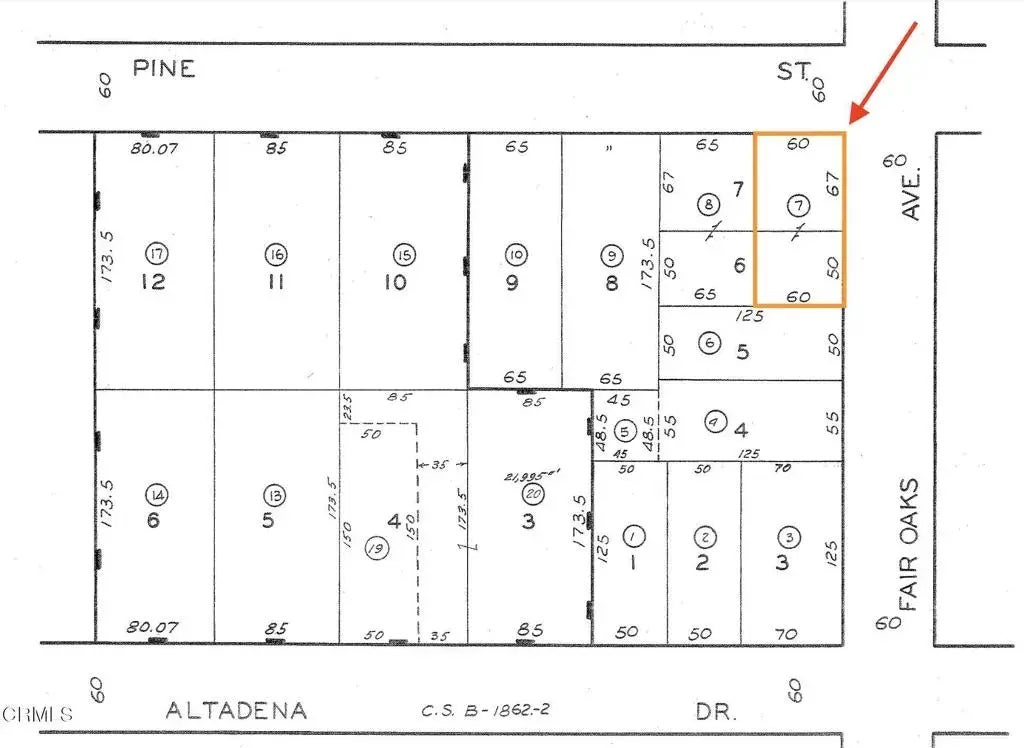 This lot lives much larger than its square footage. It offers driveway access from Fair Oaks and frontage on Pine, creating an opportunity for creative site planning and the ideal siting of your new home. This prime corner lot offers stunning mountain views, close proximity to Altadena's best parks, and easy access to everything the vibrant Lincoln Avenue Corridor has to offer. The sellers have a deep appreciation for the 10 years they were able to enjoy the Altadena lifestyle this location provides. Sunrise hikes, quiet evenings with mountain views, and being part of Altadena's incredible community while surrounded by the natural beauty of the area were among the highlights. Currently, Altadena Community Standards allow for a gross structural area of up to 2,780 square feet. This limit does not include an additional allocation for a garage or ADU. Public records indicate the lost home was 2,122 square feet with 4 beds, 3 baths plus a detached garage. This home was destroyed in the Eaton Fire, and the property is being sold as land only.